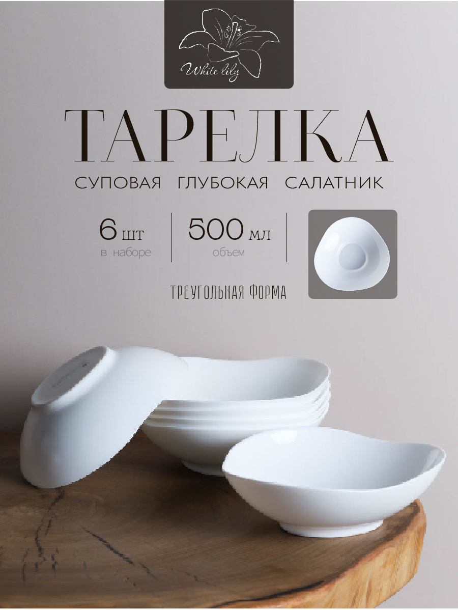 Набор тарелок на 6 персон 500 мл Треугольные белые/Глубокий салатник интересное: