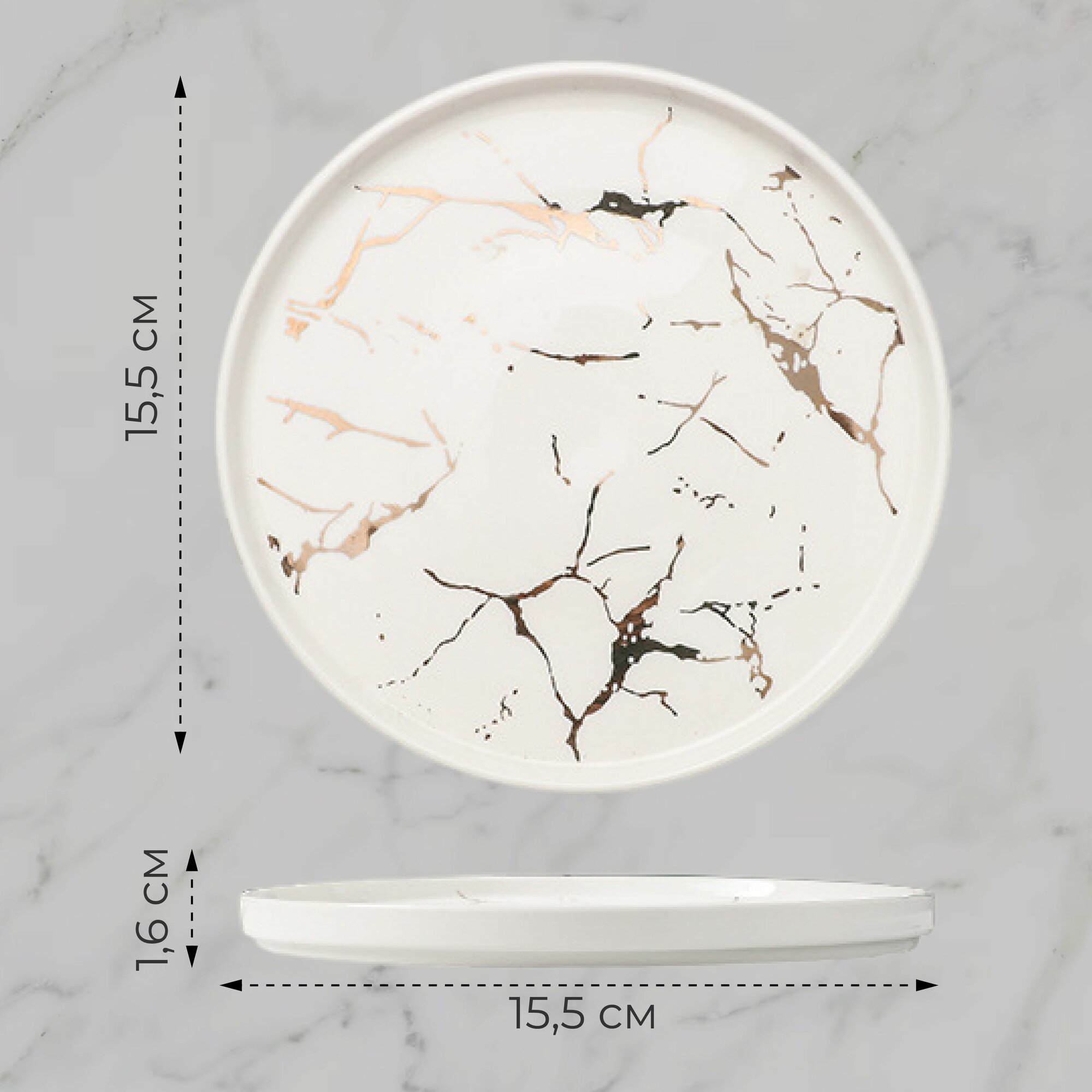 Тарелка фарфоровая, цвет Белый Мрамор, диаметр 15,5 см, магазин Melvis интересное: