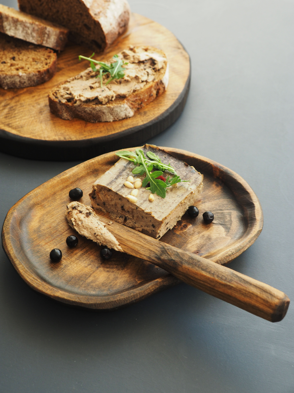 Деревянные тарелка и нож для подачи сливочного масла, сыра и паштета интересное: