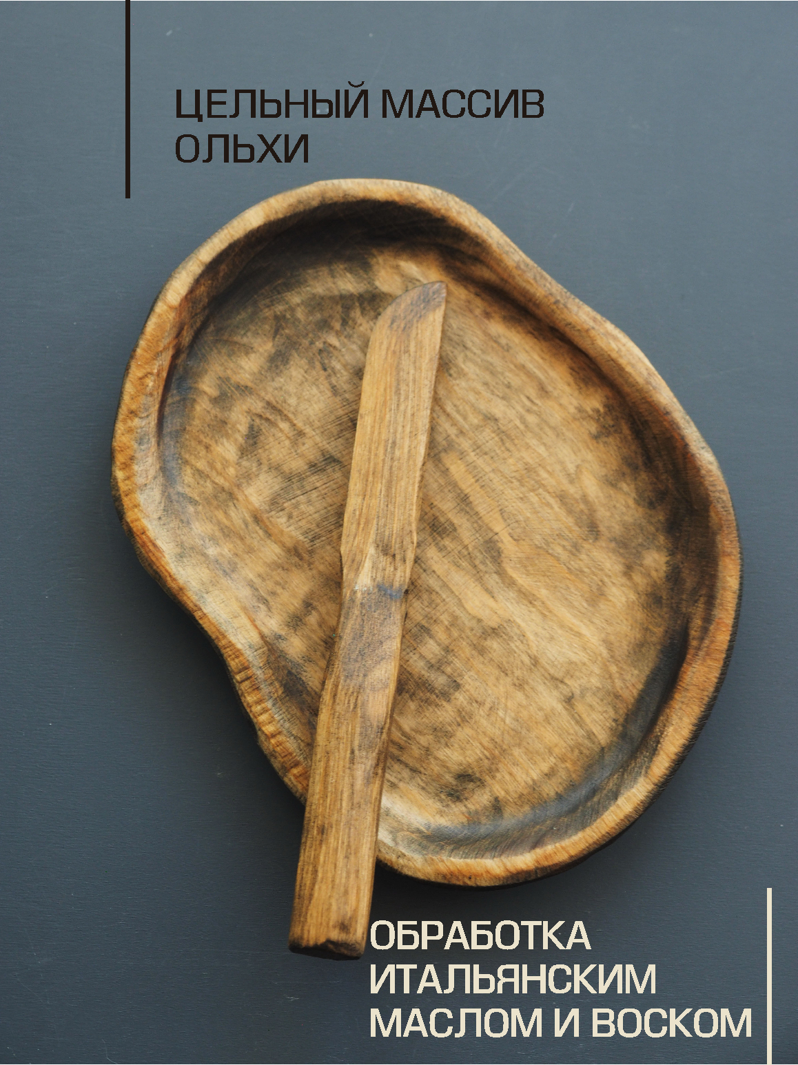 Купить Деревянные тарелка и нож для подачи сливочного масла, сыра и паштета