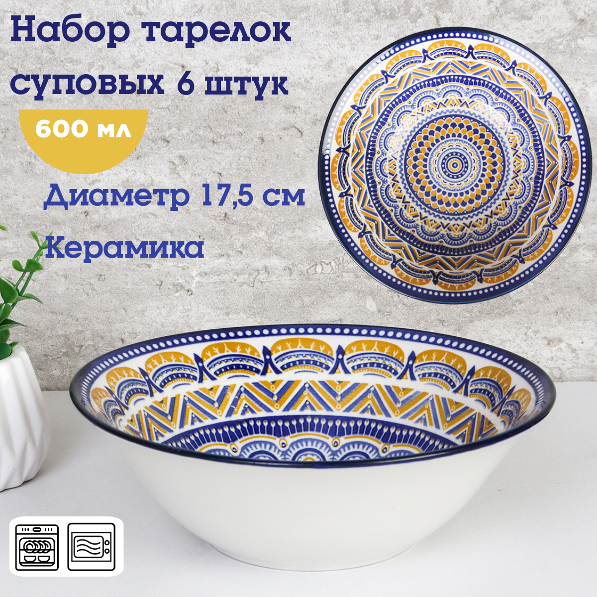 Купить Тарелка суповая глубокая 600 мл -6 штук в этническом стиле