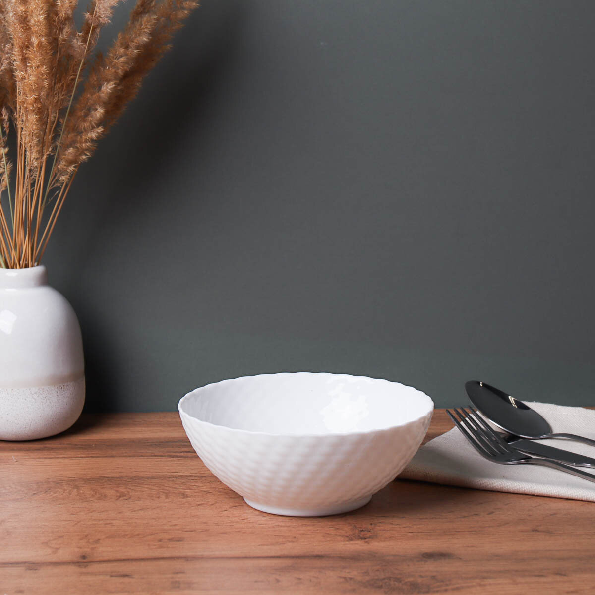 Набор тарелок 600 мл Белые с золотом/ салатник глубокий 6 шт Фактурные белые