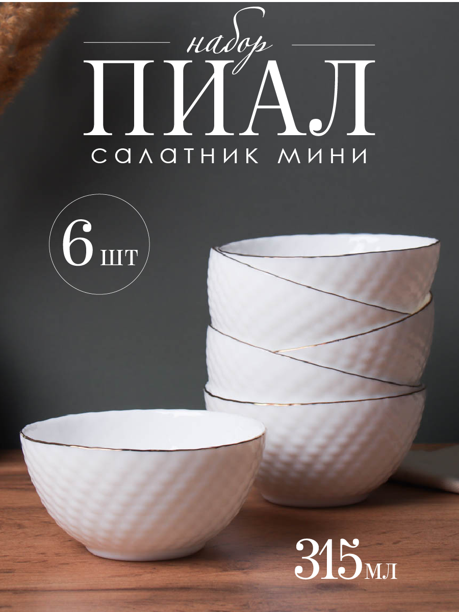 Купить Салатники мини 6 шт/ пиала 315 мл Фактурная белая с золотом