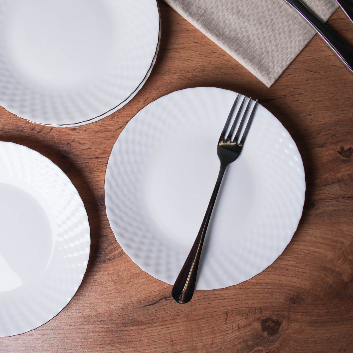 Набор тарелок 6 персон Фактурные белые/ Тарелки 12 предметов