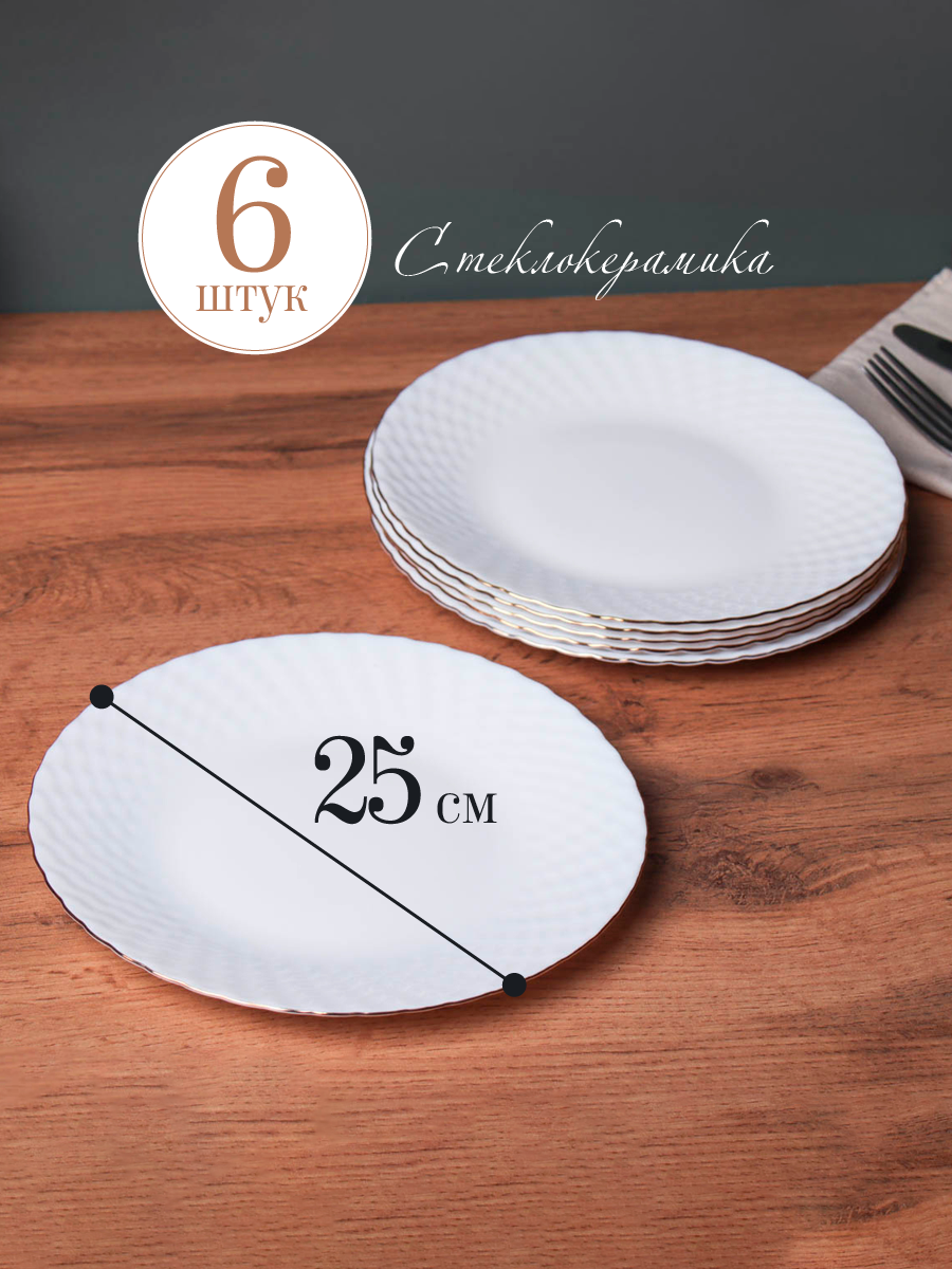 СохранитьТарелка обеденная 6 шт Фактурная белая с золотом/ набор тарелок 6 шт Фактурные интересное:
