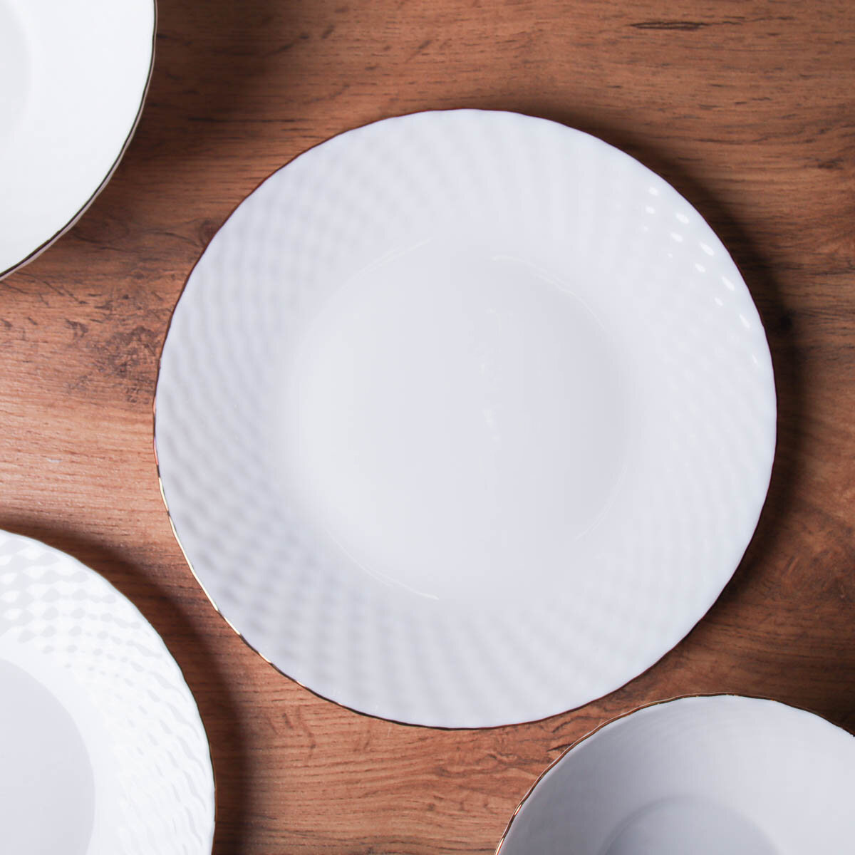 Набор тарелок 6 шт 19 см Фактурные белые с золотом