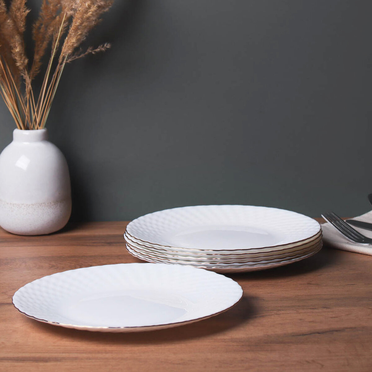 Наобор тарелок на 6 персон 21,5 см Фактурная белая