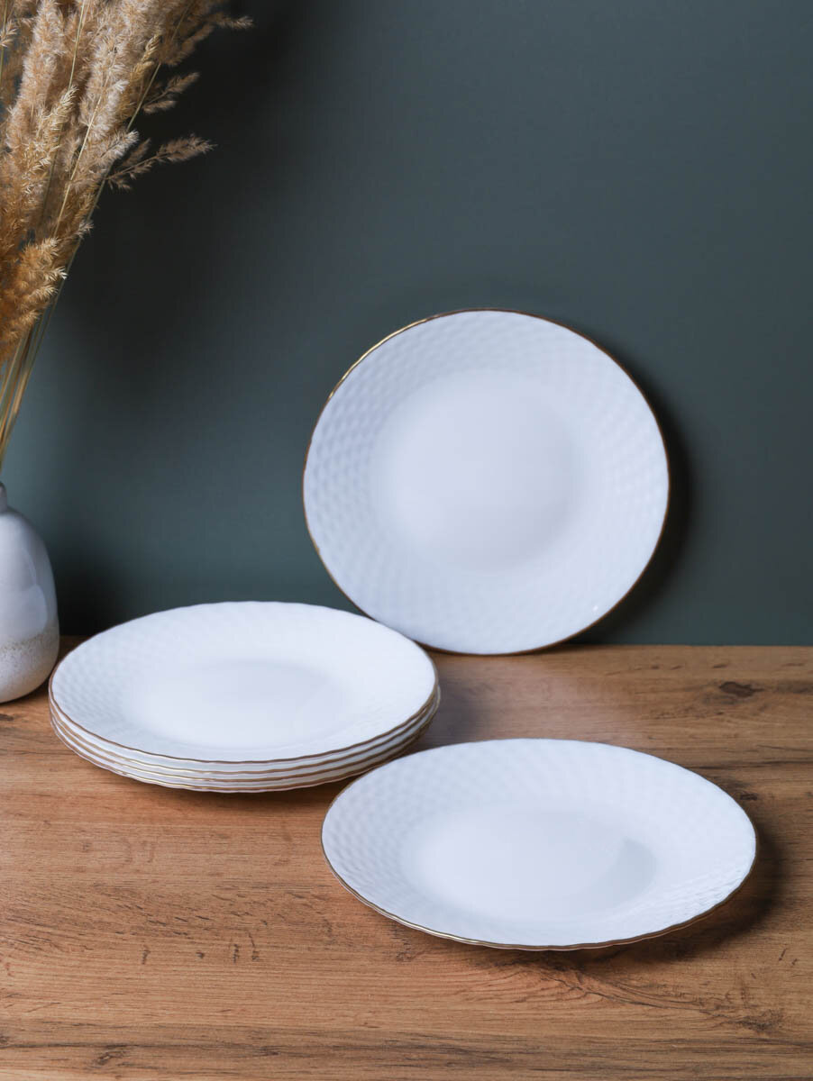 Набор тарелок 550 мл Белые с золотом/ Тарелка глубокая 6 шт Фактурные белые с золотом