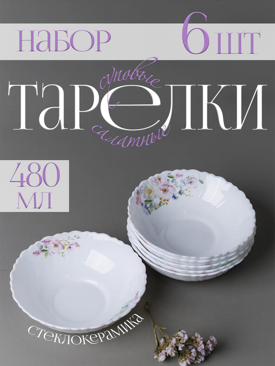 Салатник набор 6 шт 480 мл тарелка глубокая Шиповник интересное: