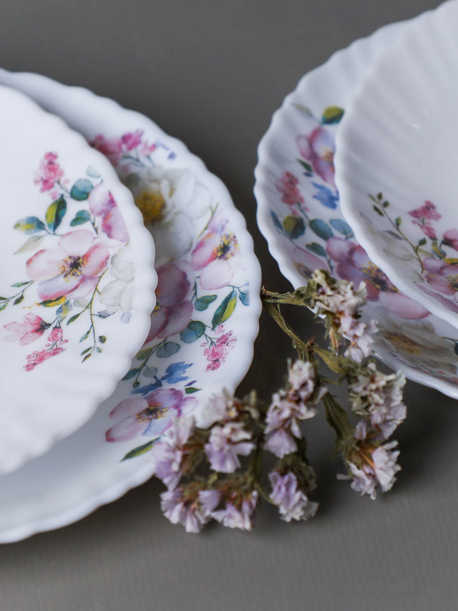 Набор тарелок WHITE LILY "Шиповник", стеклокерамика, 19см, 6 шт интересное: