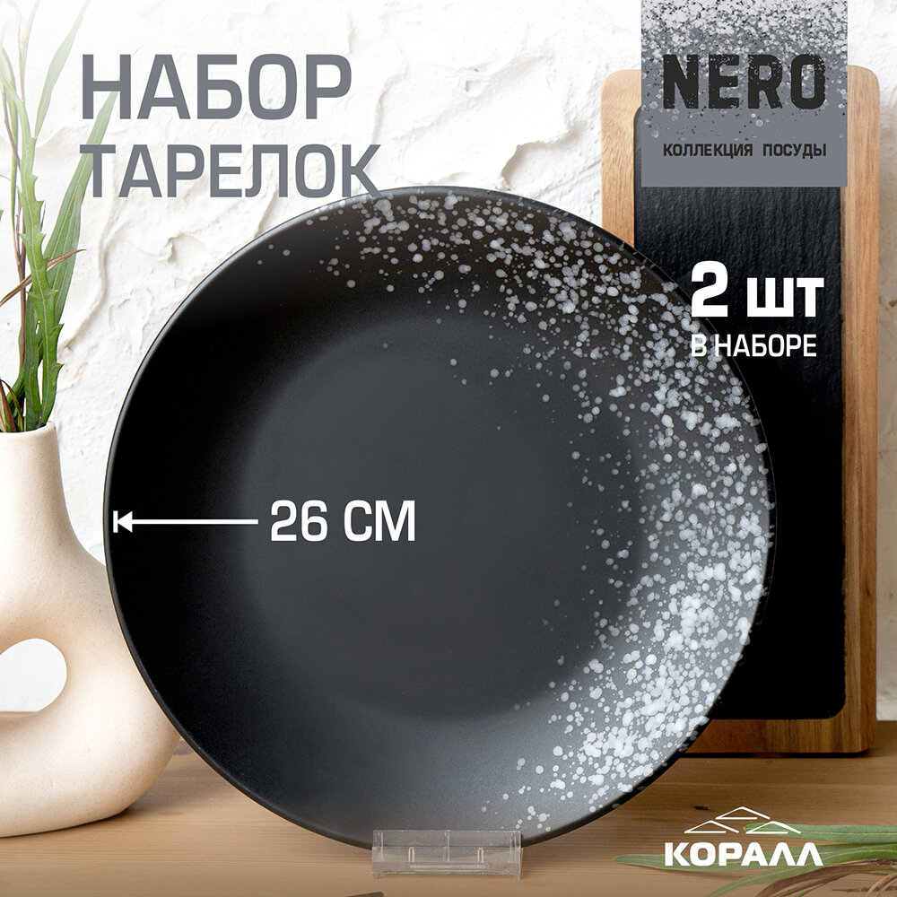 СохранитьНабор тарелок 26см, 2шт. Nero тарелки обеденные большие черные керамические для вторых блюд. интересное: