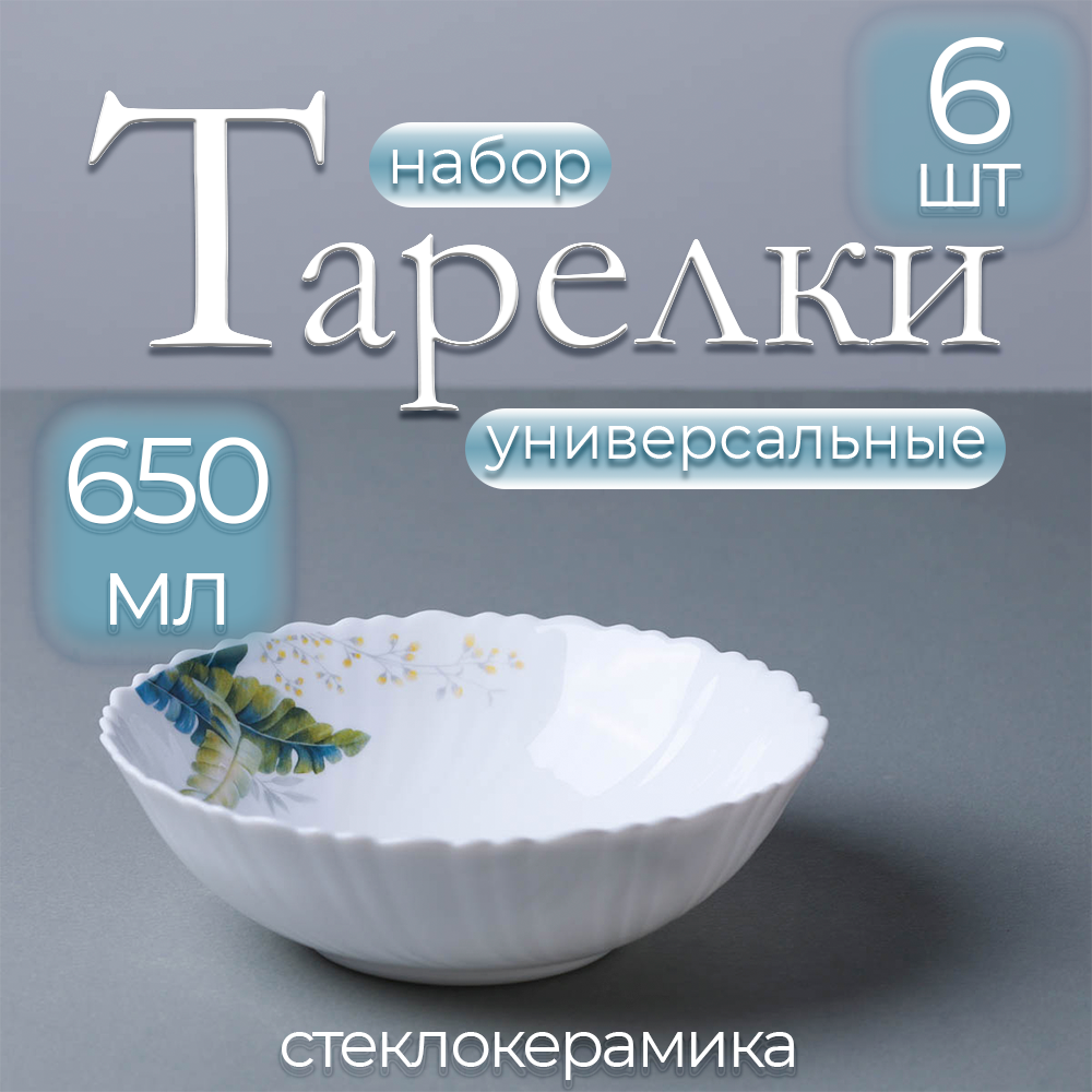 Набор тарелок Евро "Папоротник" White Lily, стеклокерамика, 6 шт, 550 мл