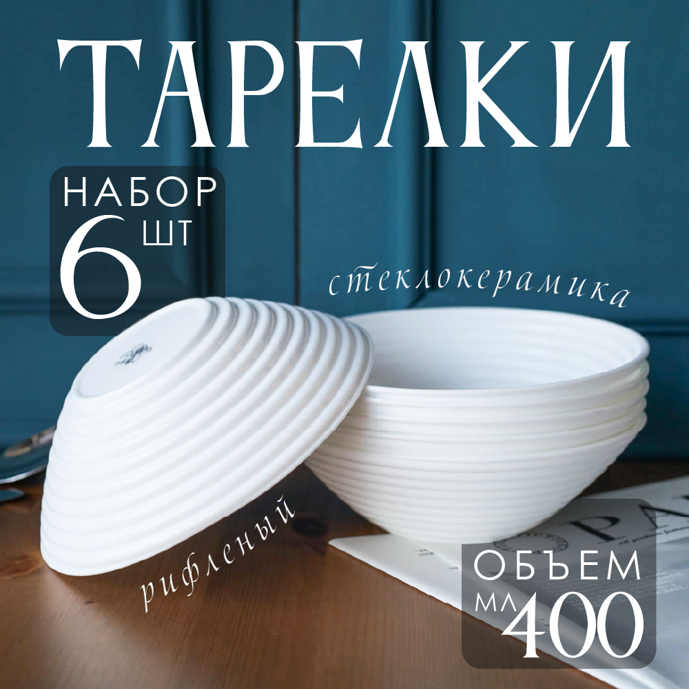 Набор глубоких тарелок 6 шт 400 мл 16 см Риф белый интересное: