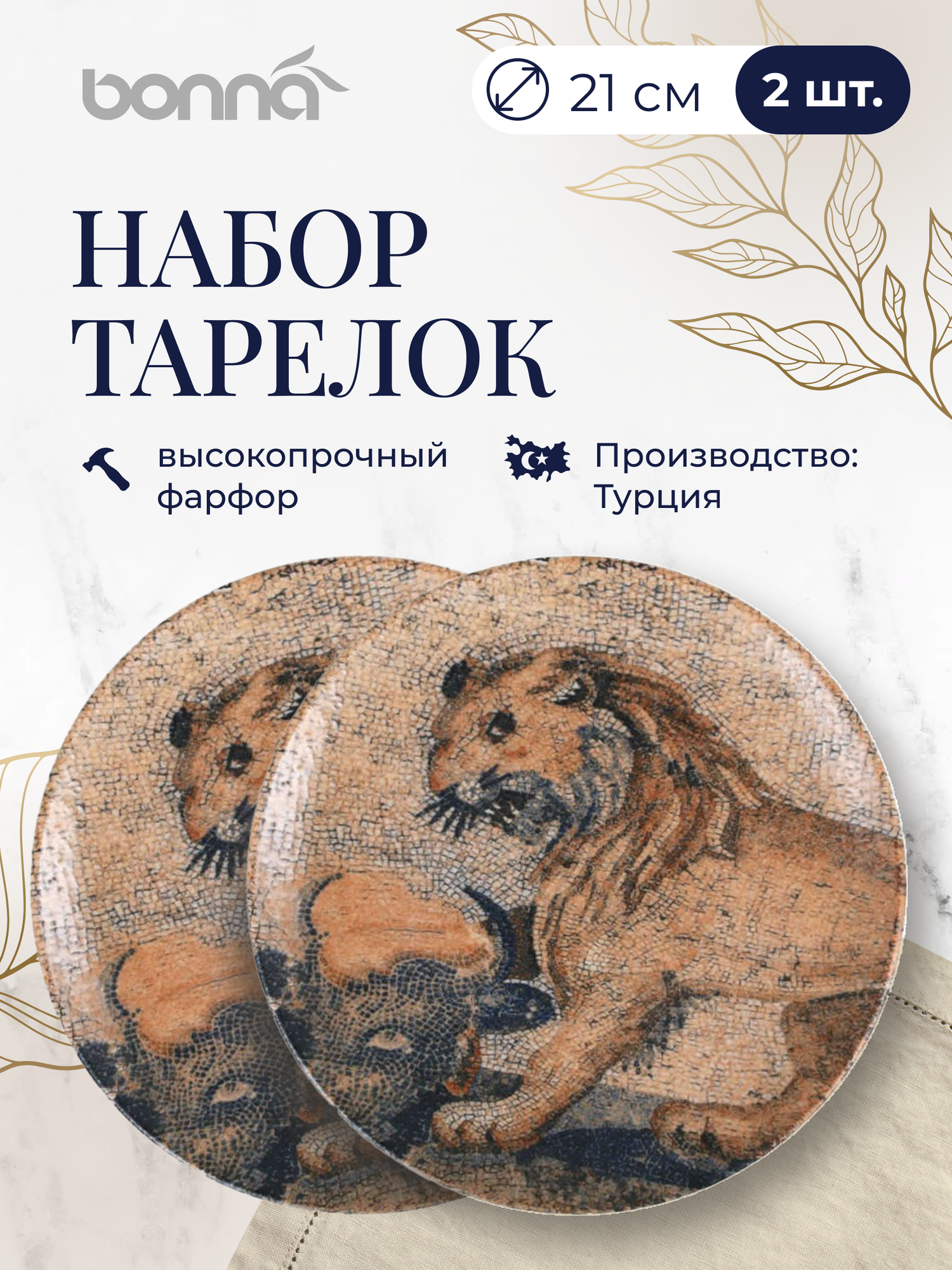 Купить Набор тарелок 2 штуки Mesopotamia, диаметр 21 см, фарфор, цвет коричневый, Bonna