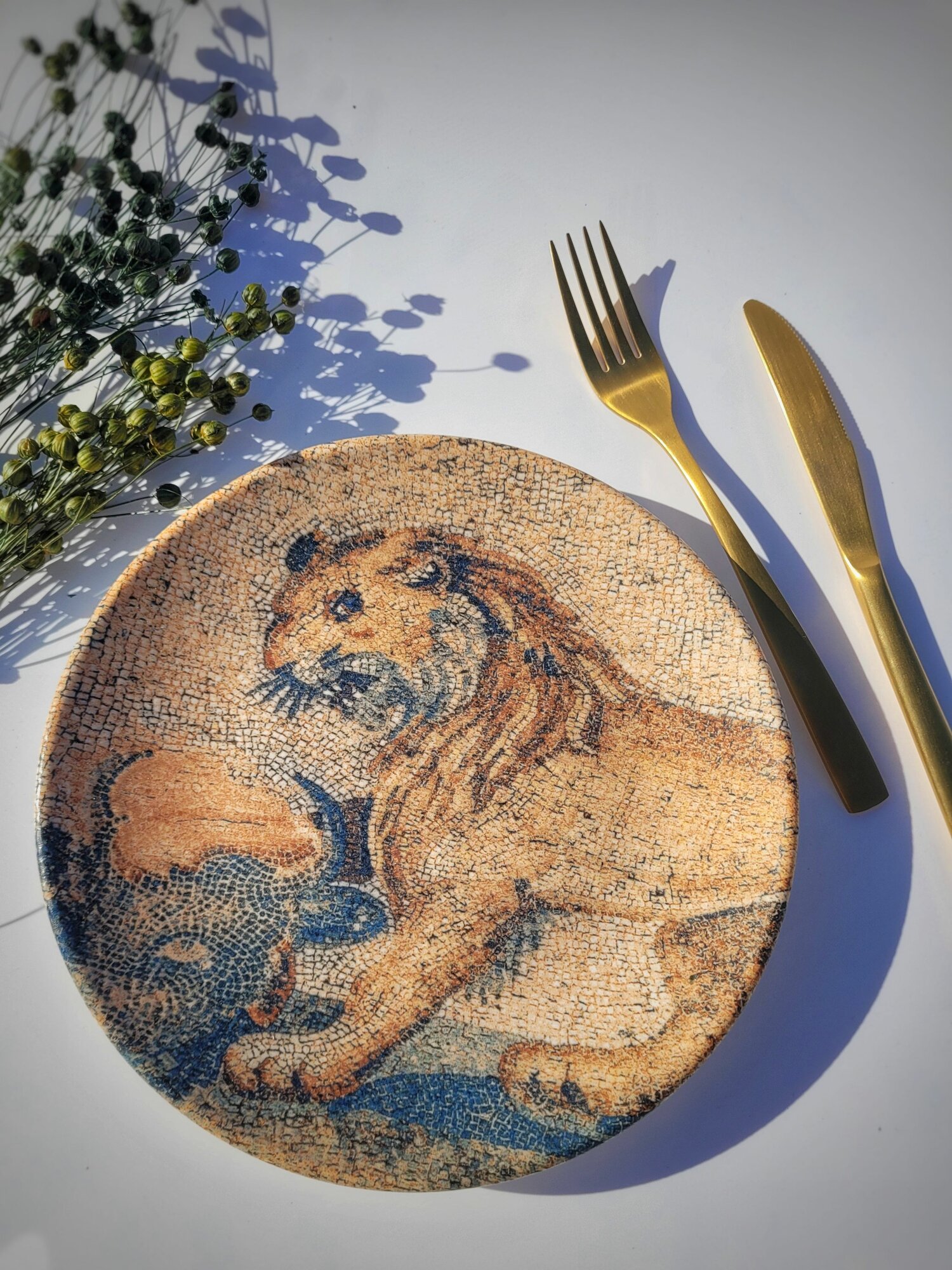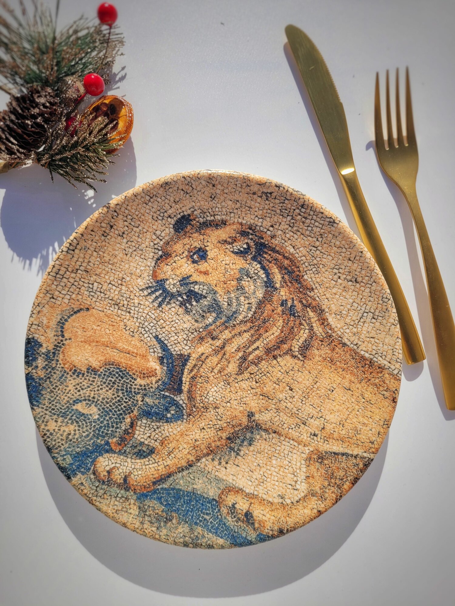 СохранитьТарелка обеденная круглая, матовая лев "Месопотамия Османия" 1 шт, 21см, Ударопрочный, профессиональный фарфор. интересное:
