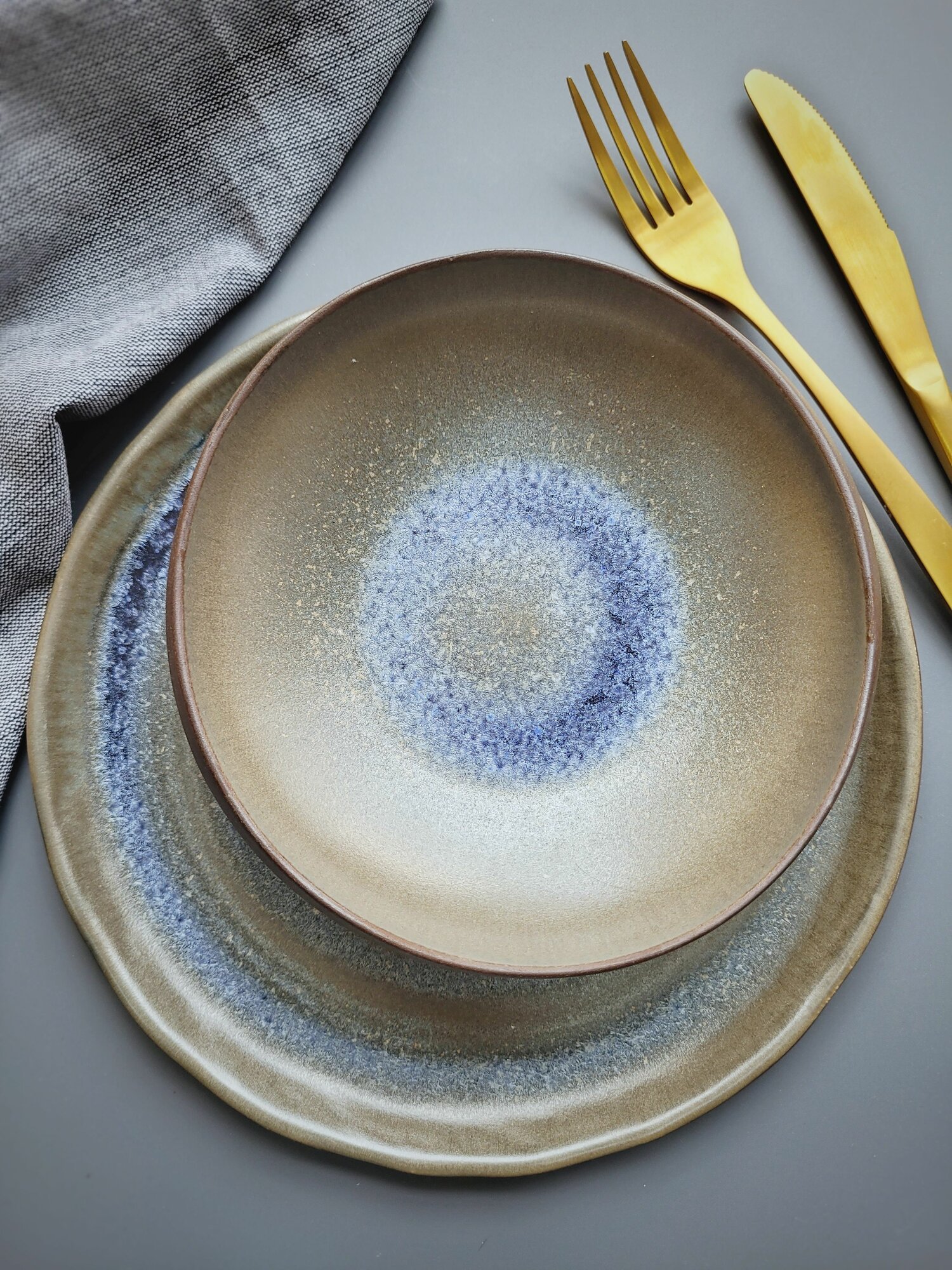 Тарелка обеденная капля, матовая косуля "Саванна" 1 шт, 24см. Ударопрочный, профессиональный фарфор.