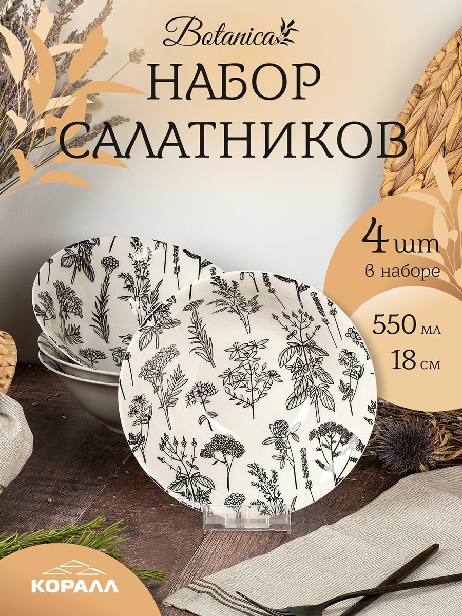 СохранитьНабор глубоких тарелок/ салатников 4 шт. 550мл/18 см. фарфор "Botanica" миска, бульонница, тарелка суповая интересное:
