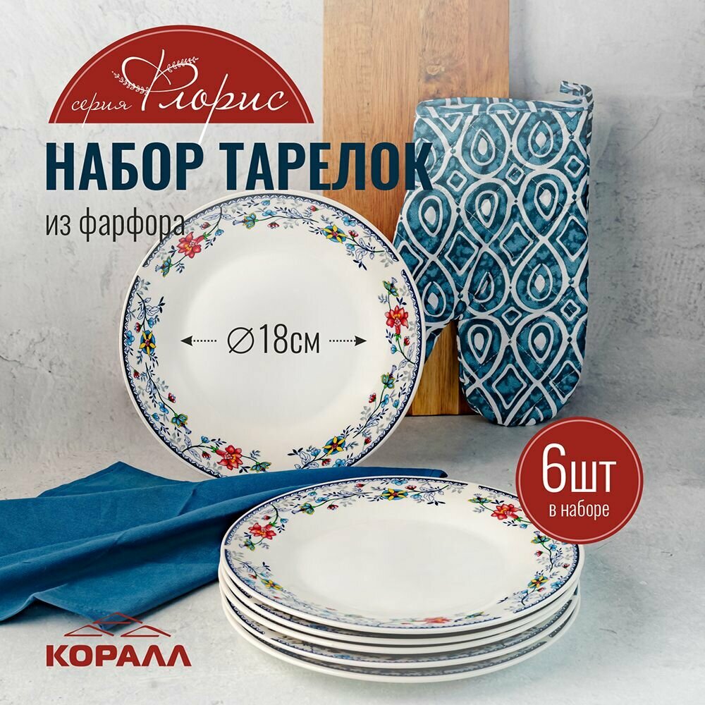 Купить Набор тарелок 18 см 6 шт. набор фарфоровой посуды Флорис тарелки десертные пирожковые Коралл