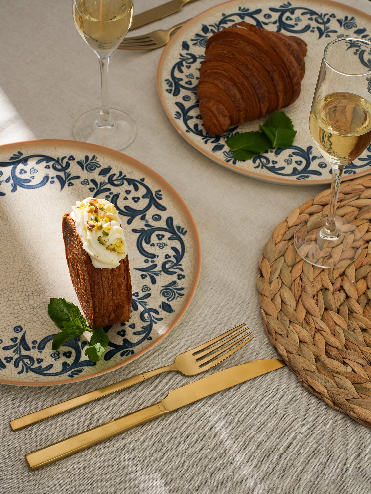 Купить Набор тарелок 2 штуки, диаметр 28 см, фарфор, бежевый, синий, Bonna Viento