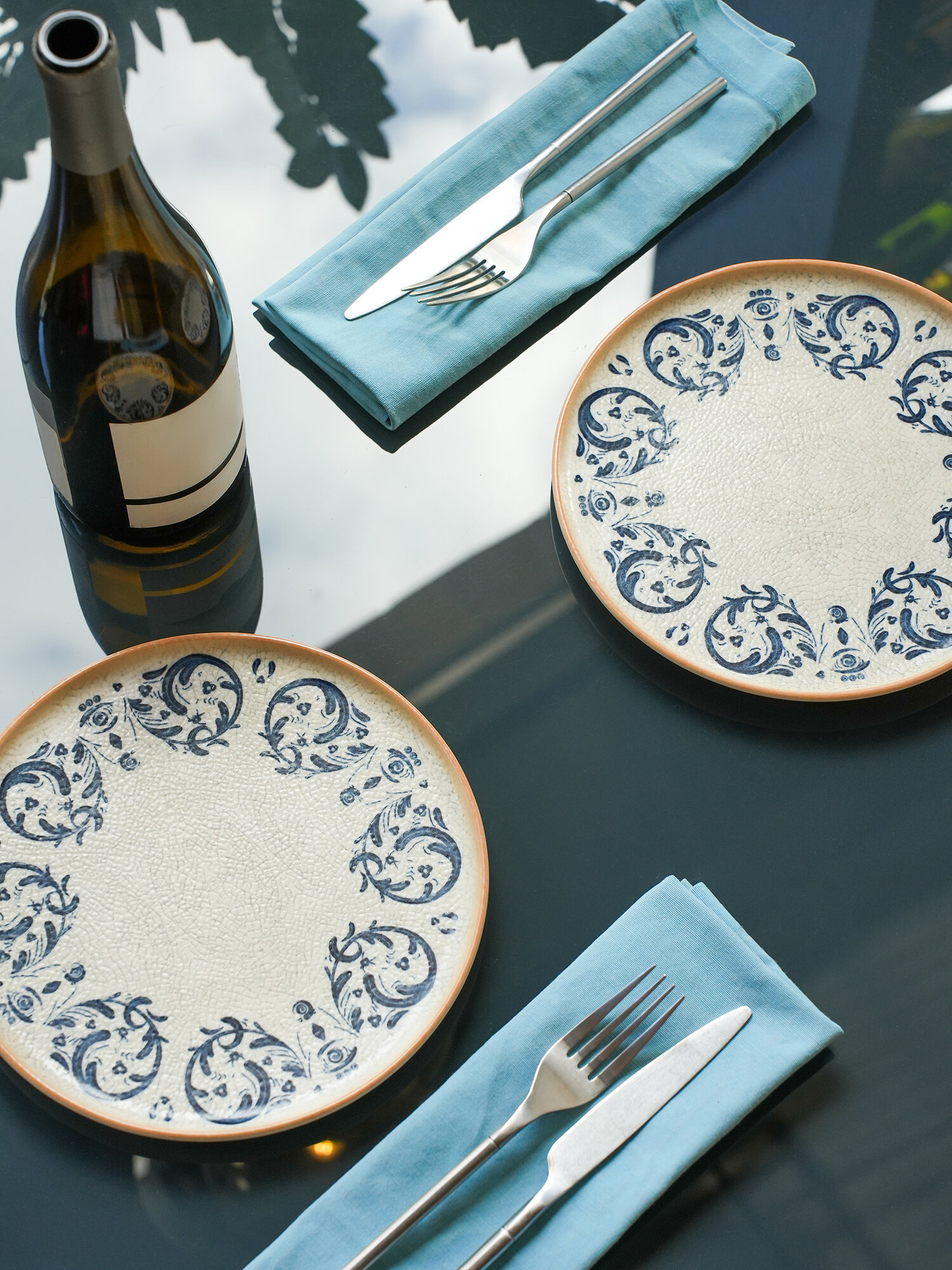 Набор тарелок 4 штуки, серия Viento, диаметр 33 см, фарфор, белый, синий, Bonna