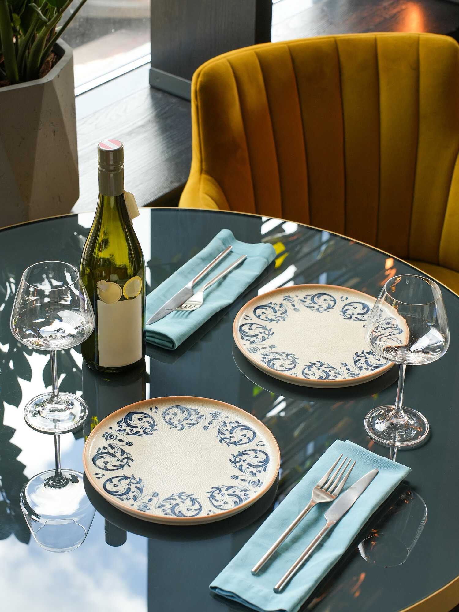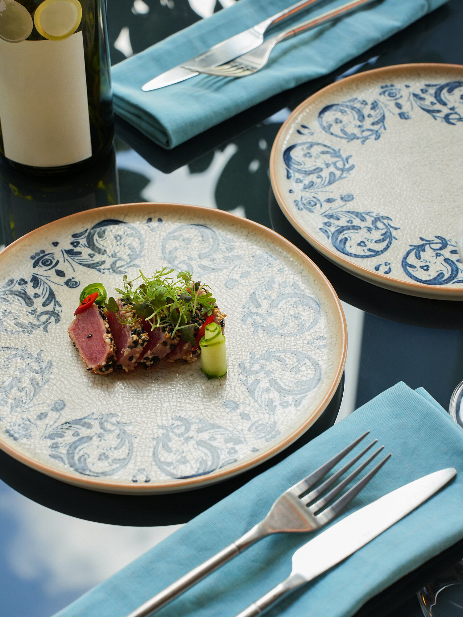 Набор тарелок 2 штуки, диаметр 24 см, фарфор, белый, синий, Bonna Viento