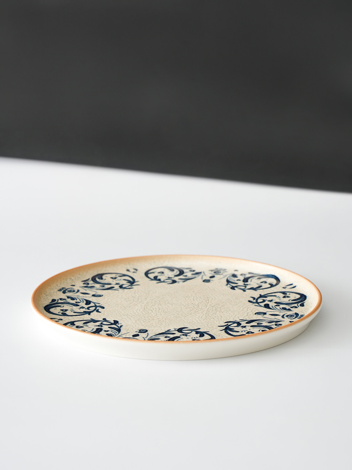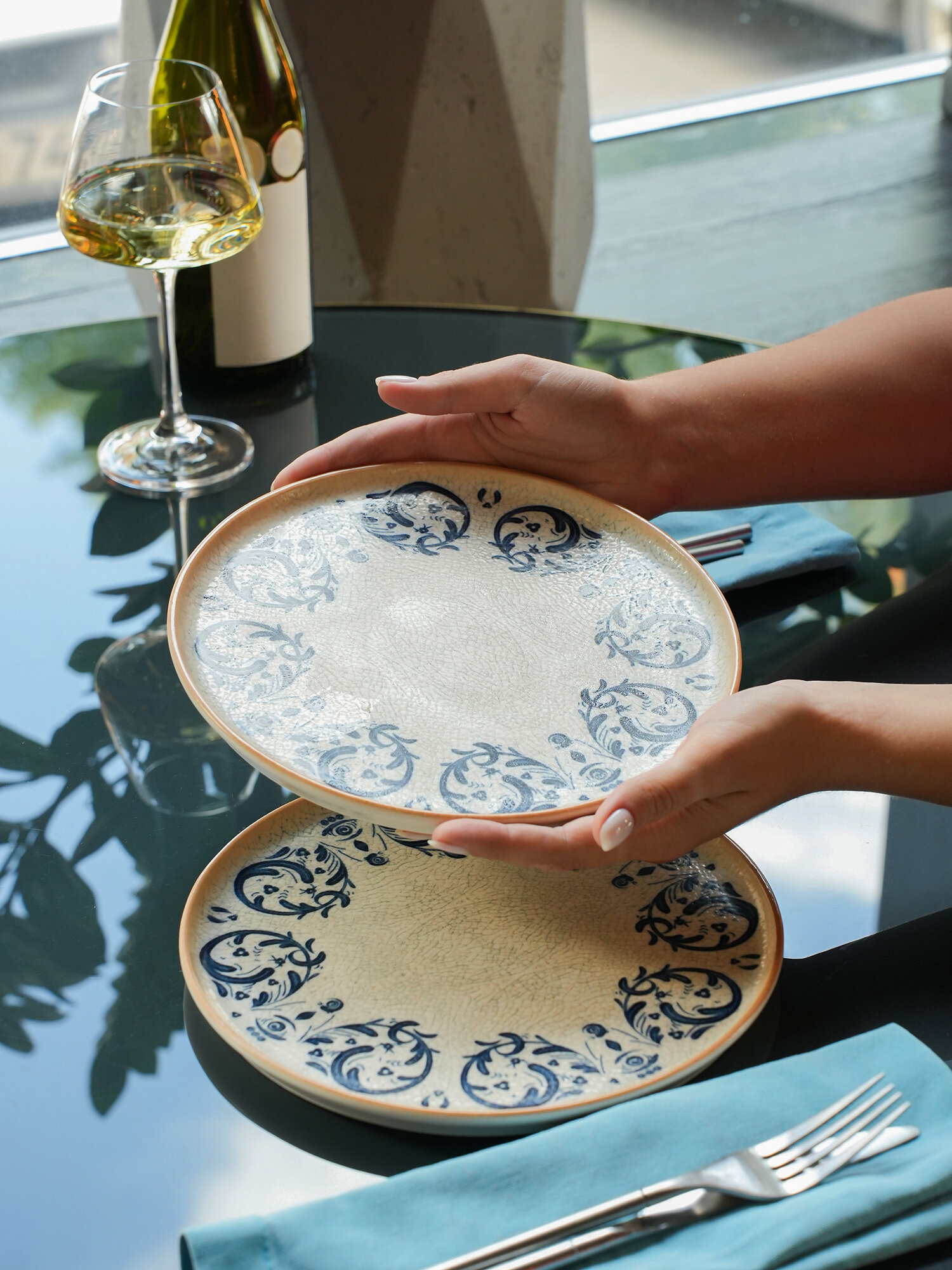 Набор тарелок 2 штуки, диаметр 28 см, фарфор, бежевый, синий, Bonna Viento