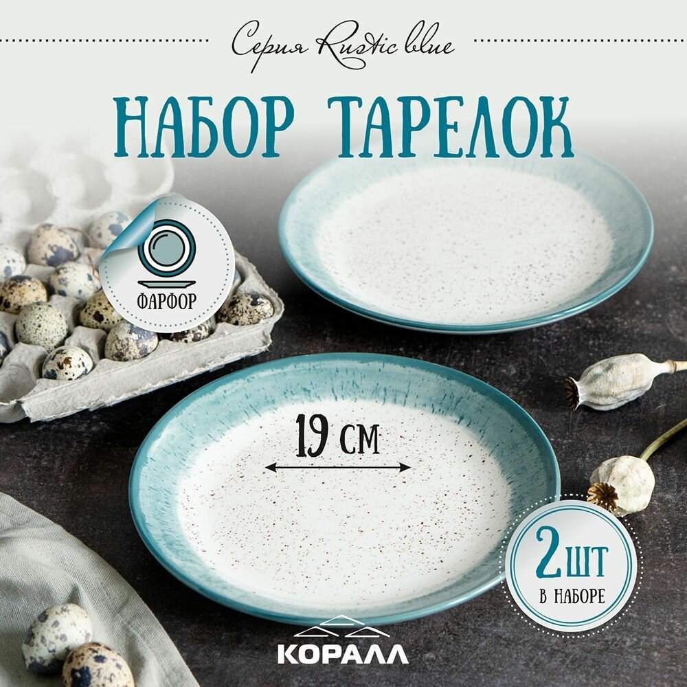Тарелки набор фарфор 2шт. 19 см. "Rustic blue", тарелка десертная, закусочная на две персоны интересное: