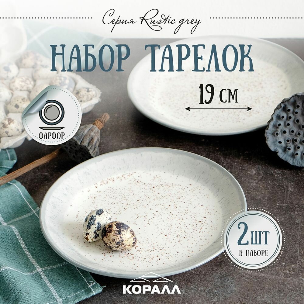 Тарелки набор фарфор 2шт. 19 см. "Rustic grey", тарелка десертная, закусочная на две персоны интересное: