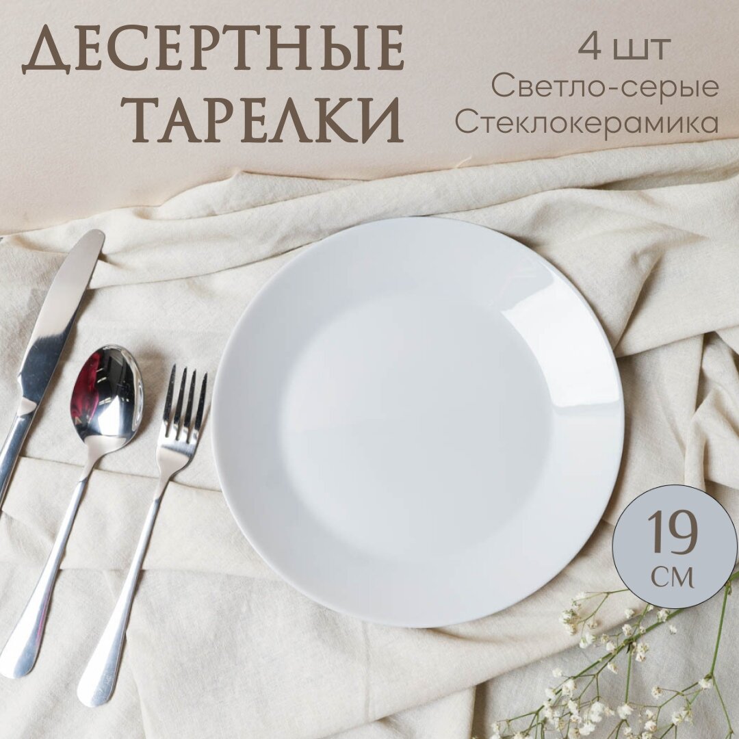 Тарелка 19 см Серая 4штуки стеклокерамика десертная интересное: