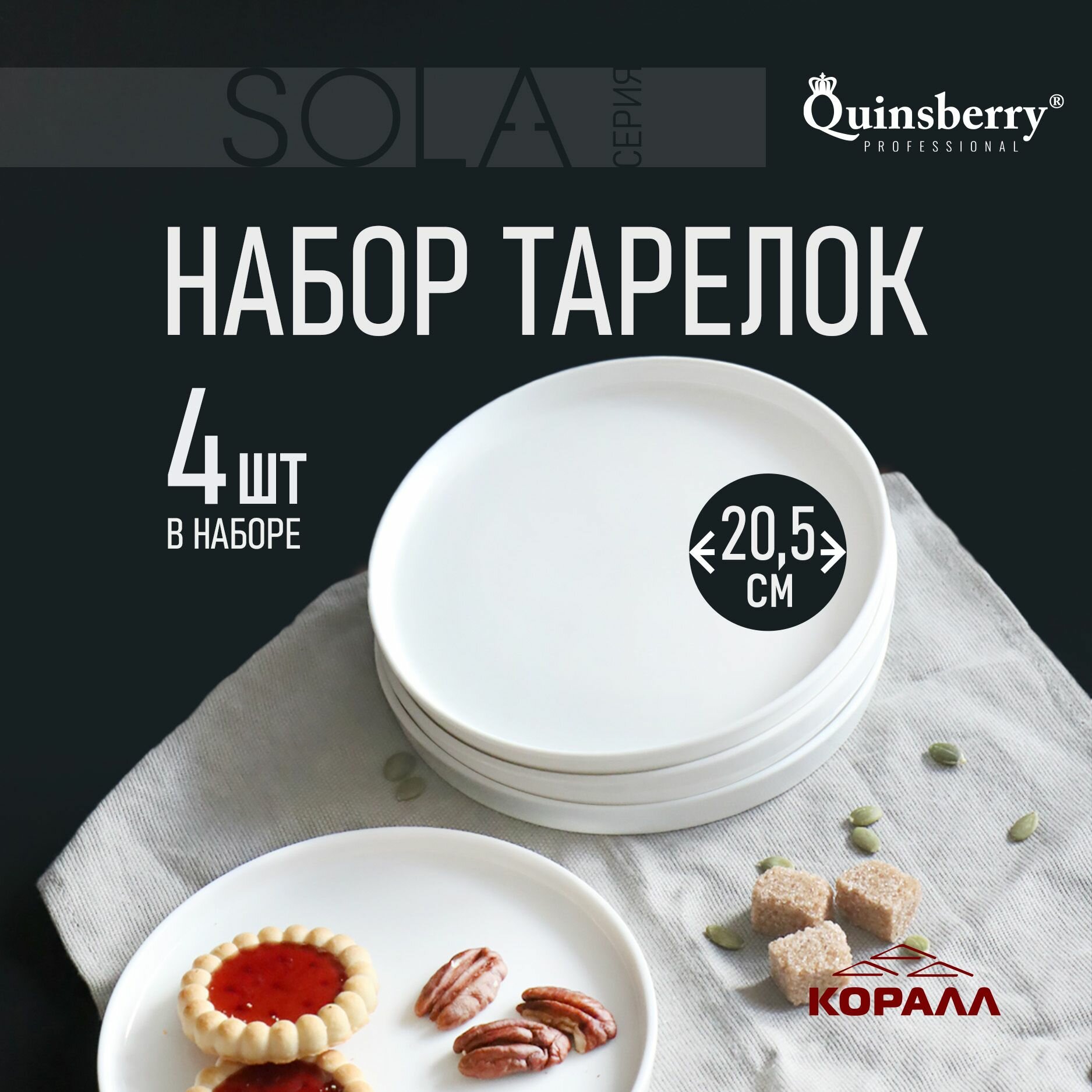 СохранитьТарелки набор 4 шт. обеденные белые круглые с бортом 20.5 см Sola фарфор интересное: