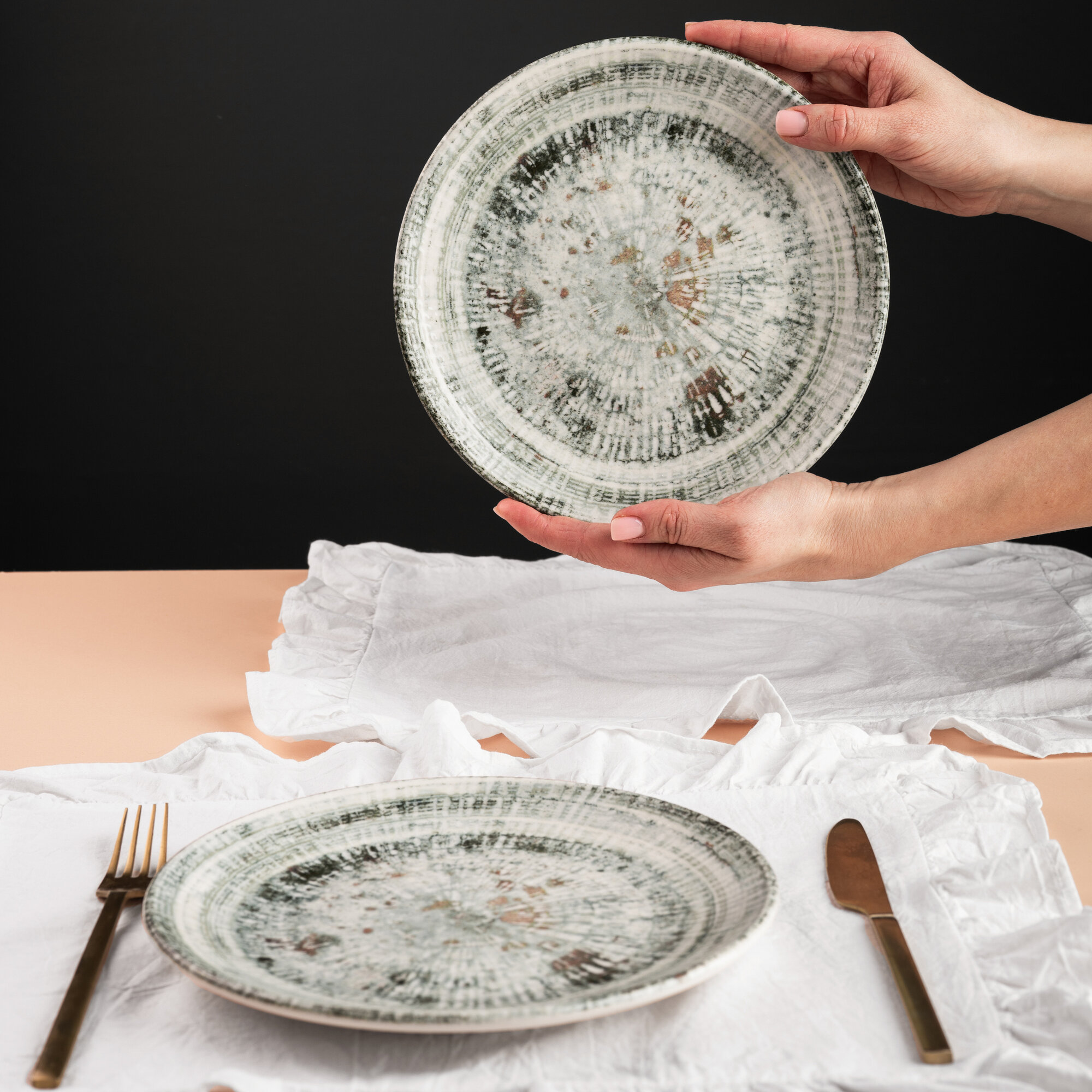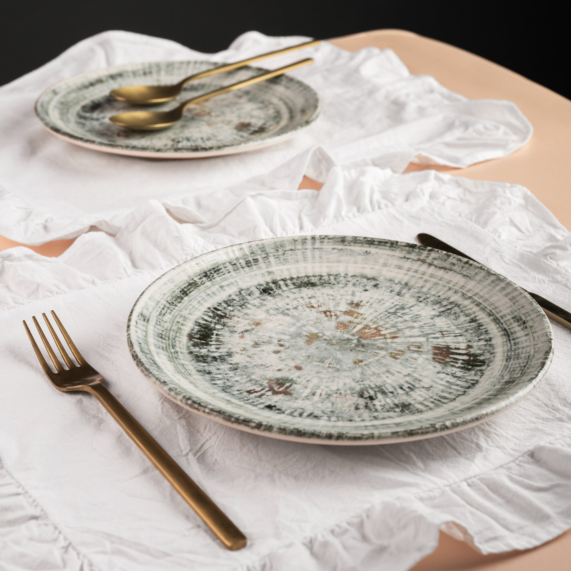 Набор тарелок 2 штуки, серия Odette Olive, диаметр 25 см, фарфор, серый, Bonna