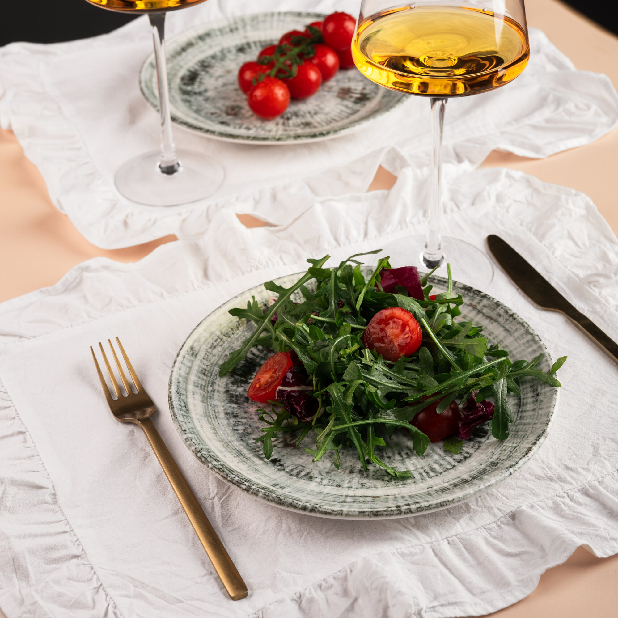 Набор салатников 2 штуки, объем 400мл, диаметр 16см, фарфор, зеленый, Bonna Odette