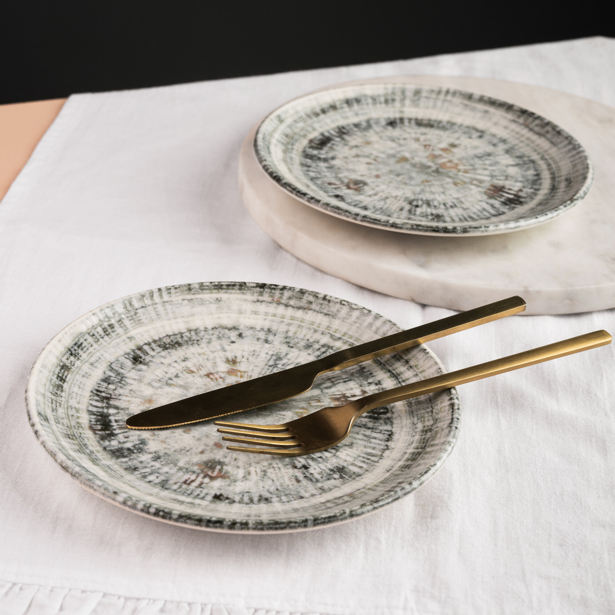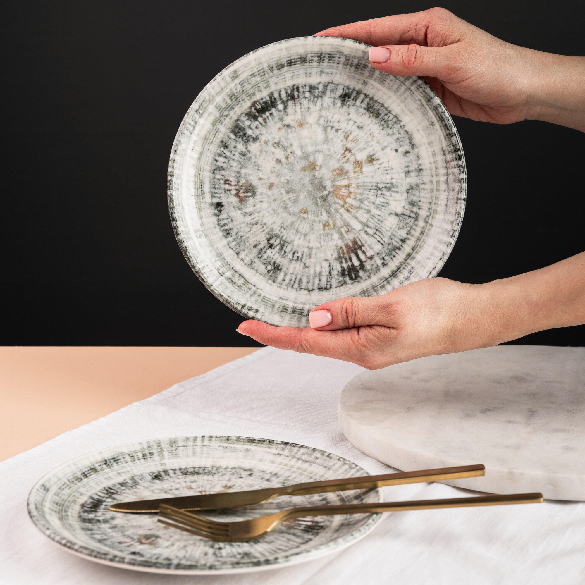 Набор тарелок 2 штуки, серия Odette Olive, диаметр 25 см, фарфор, серый, Bonna