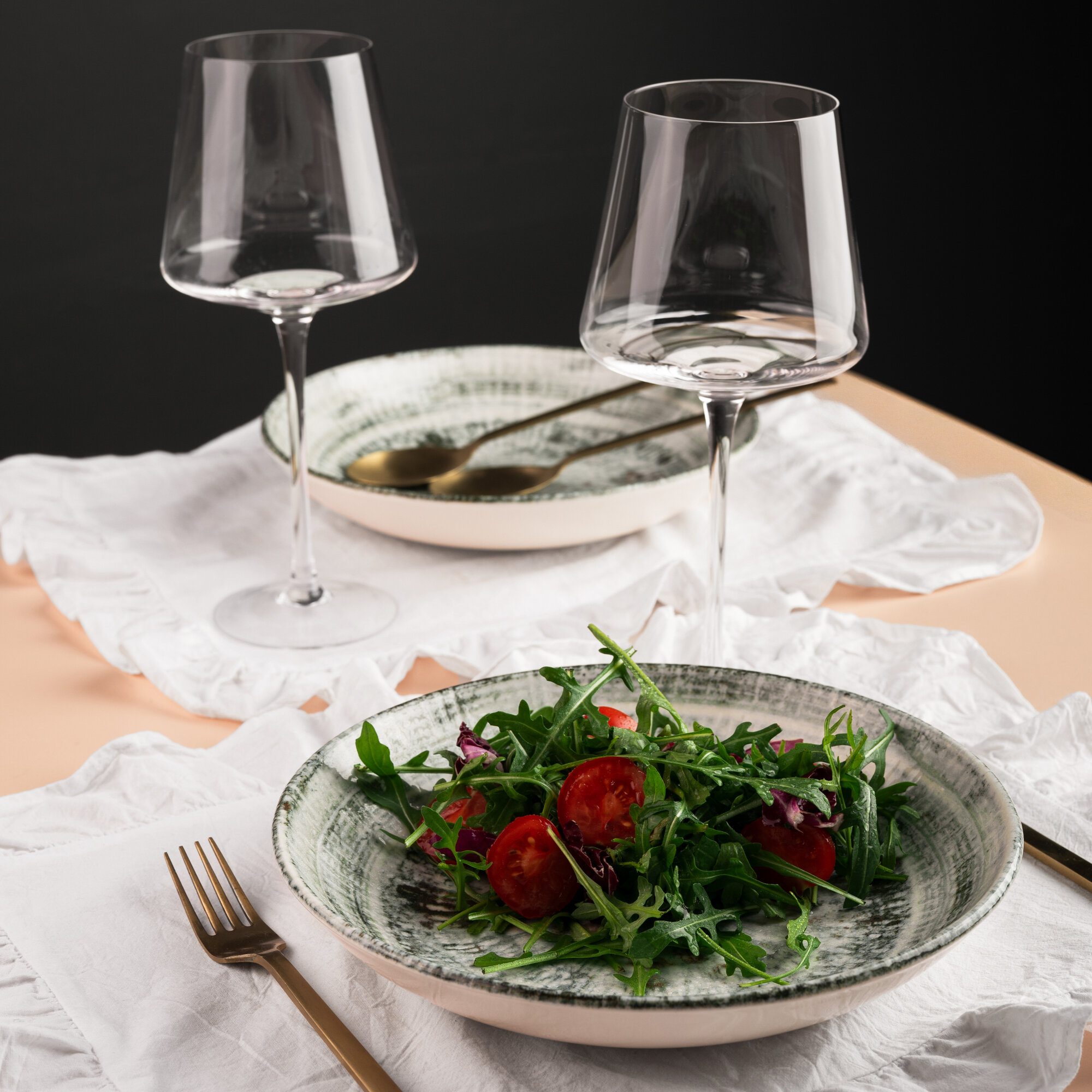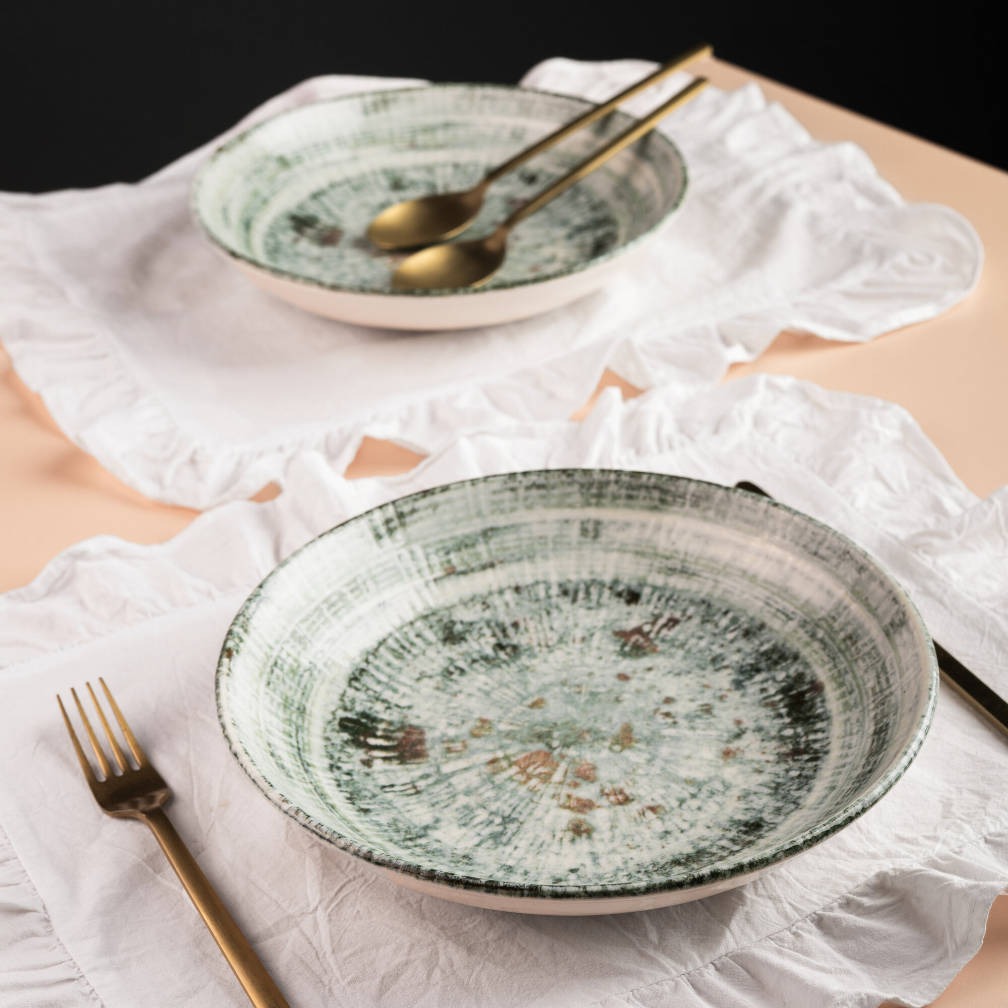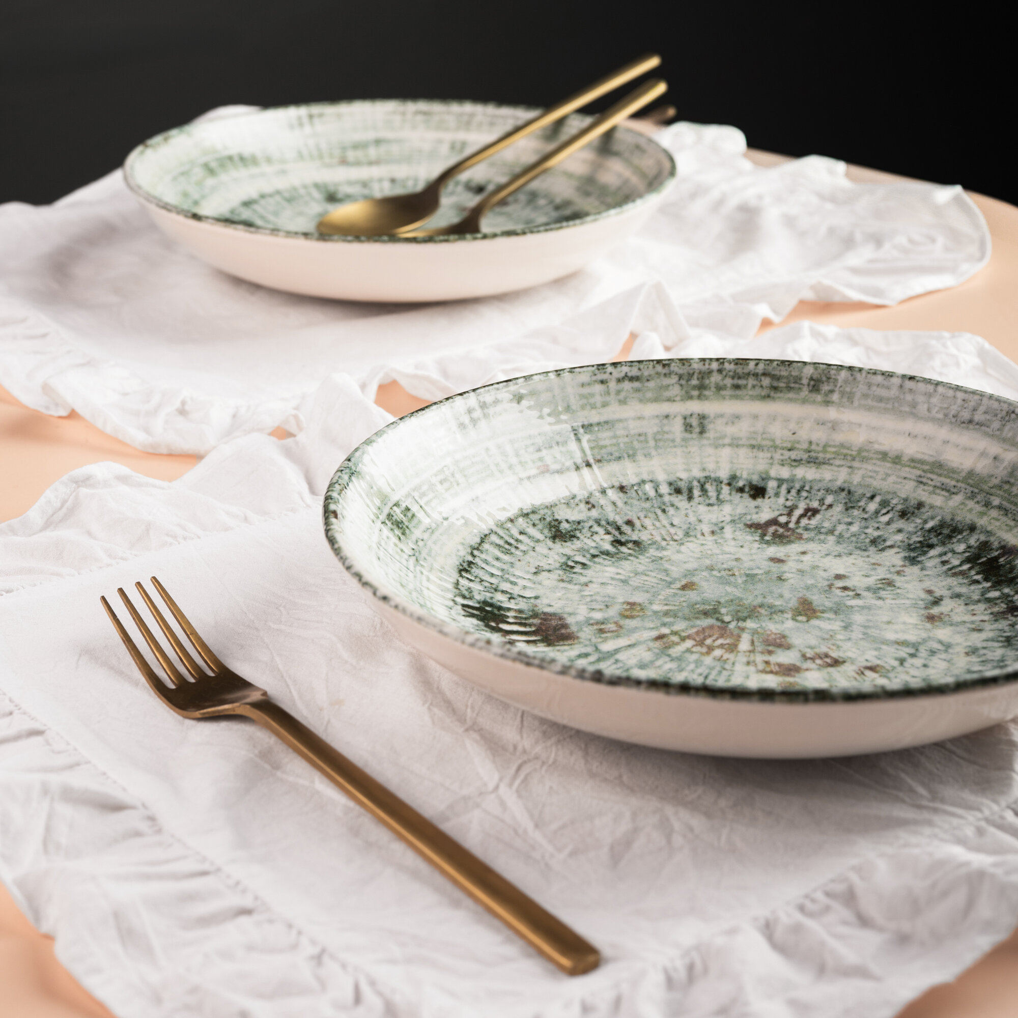 Набор салатников 2 штуки, объем 400мл, диаметр 16см, фарфор, зеленый, Bonna Odette