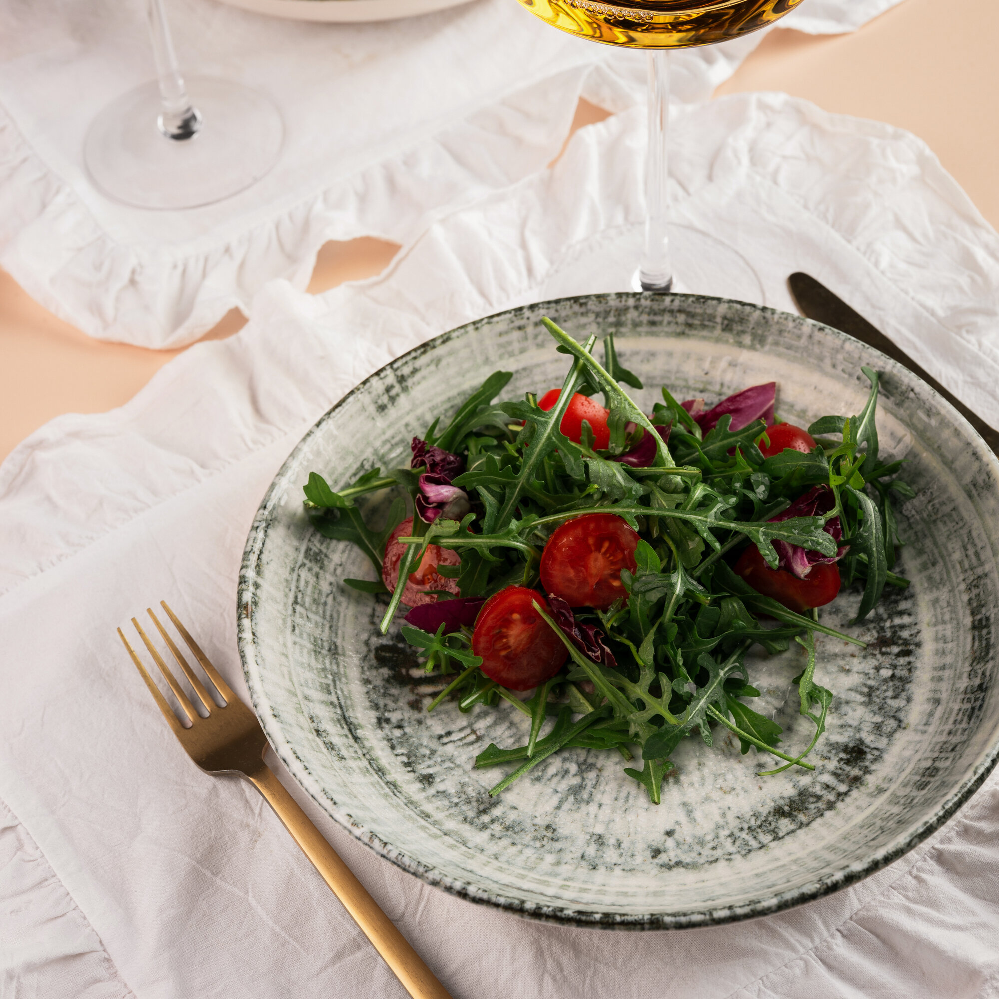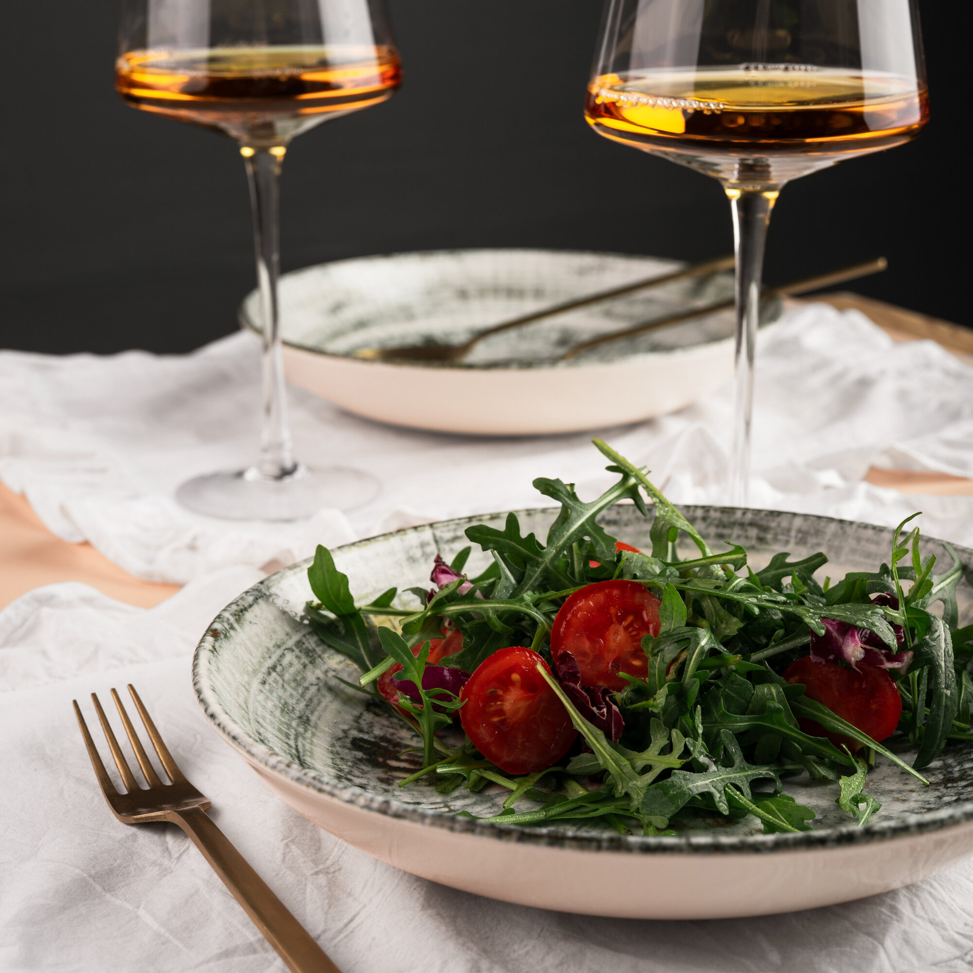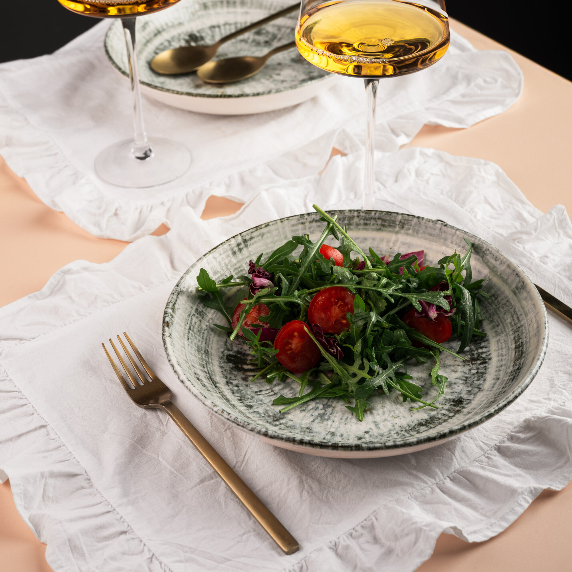 Набор салатников 2 штуки, объем 400мл, диаметр 16см, фарфор, зеленый, Bonna Odette