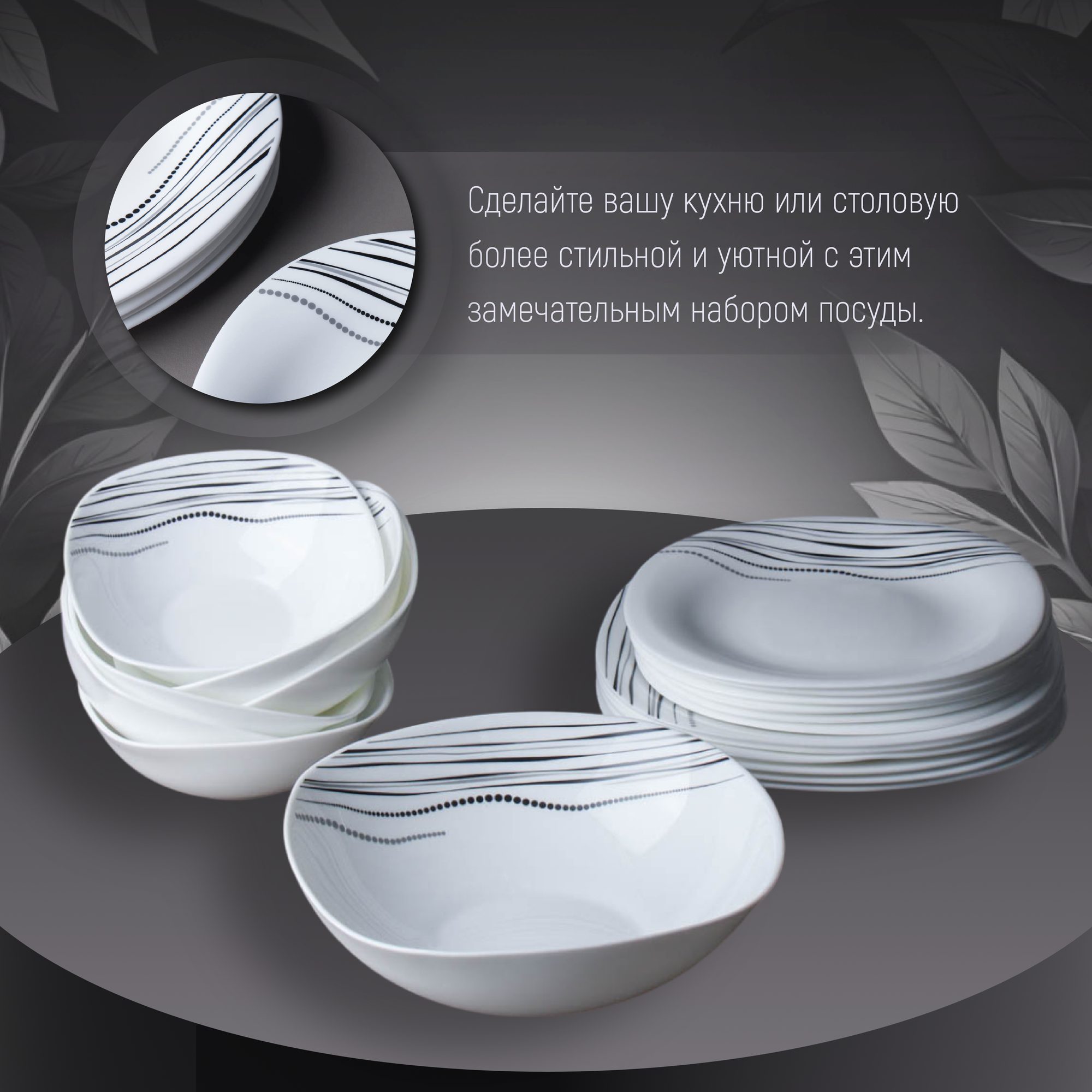 Столовый набор 19 предметов квадратный Волна на 6 персон /Для сервировки/Набор тарелок интересное: