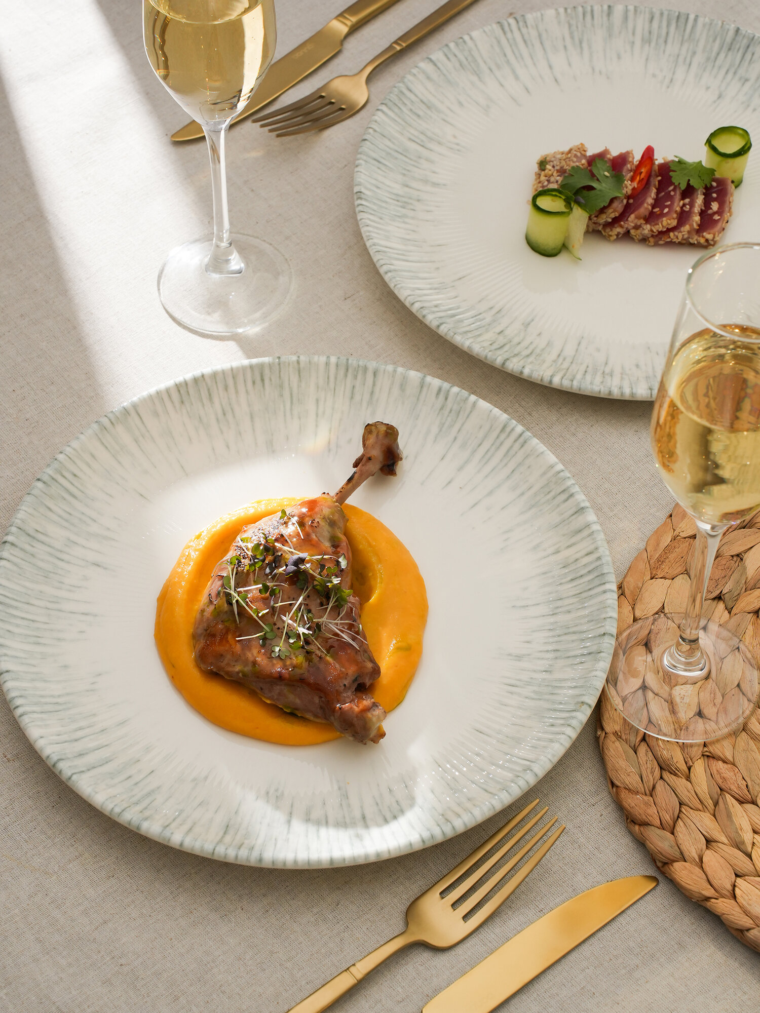 СохранитьНабор тарелок 2 штуки, диаметр 25 см, фарфор, белый, серый, Bonna Iris интересное: