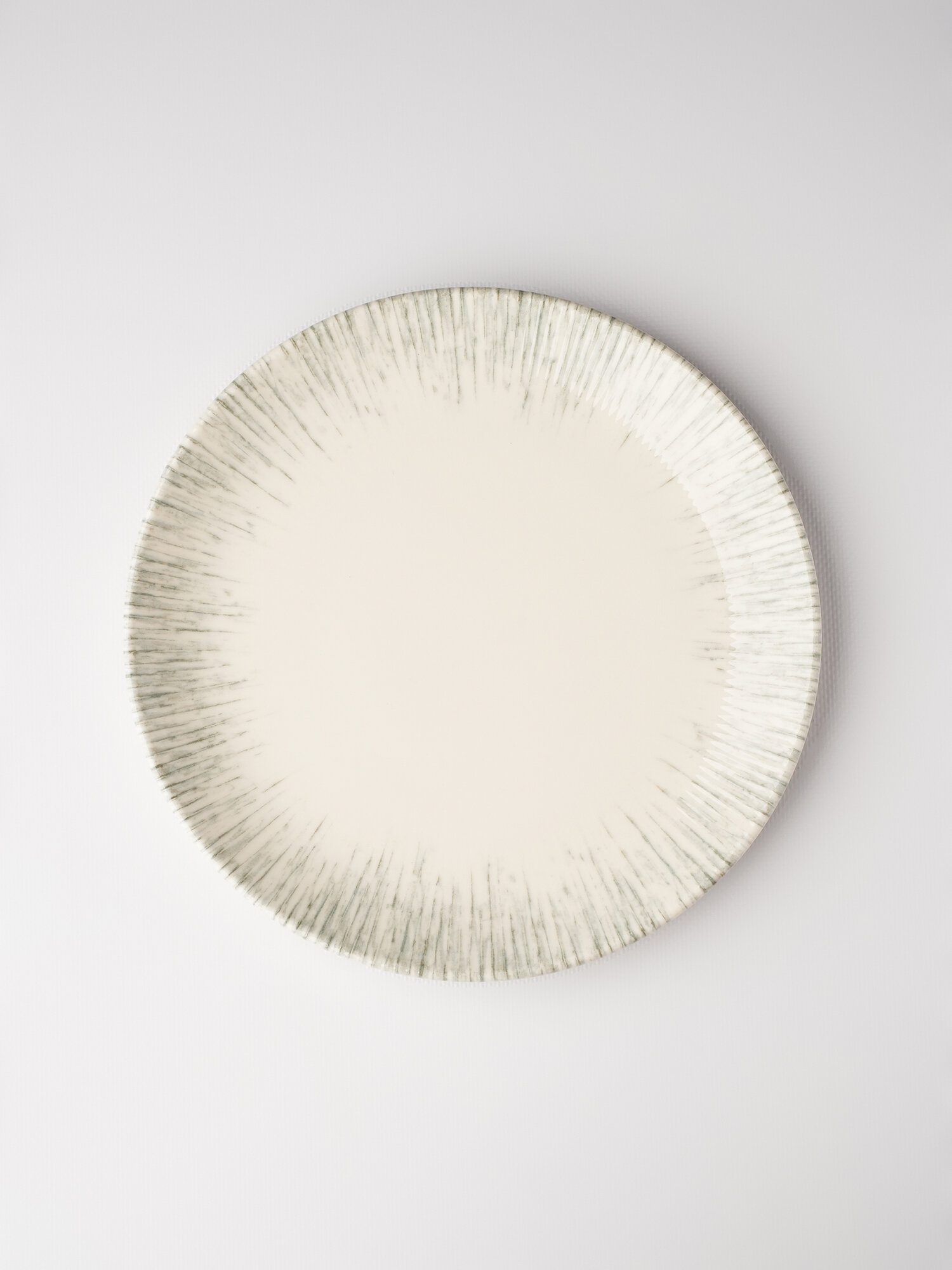 Набор тарелок 4 штуки, серия Iris, диаметр 24 см, фарфор, белый, серый, Bonna