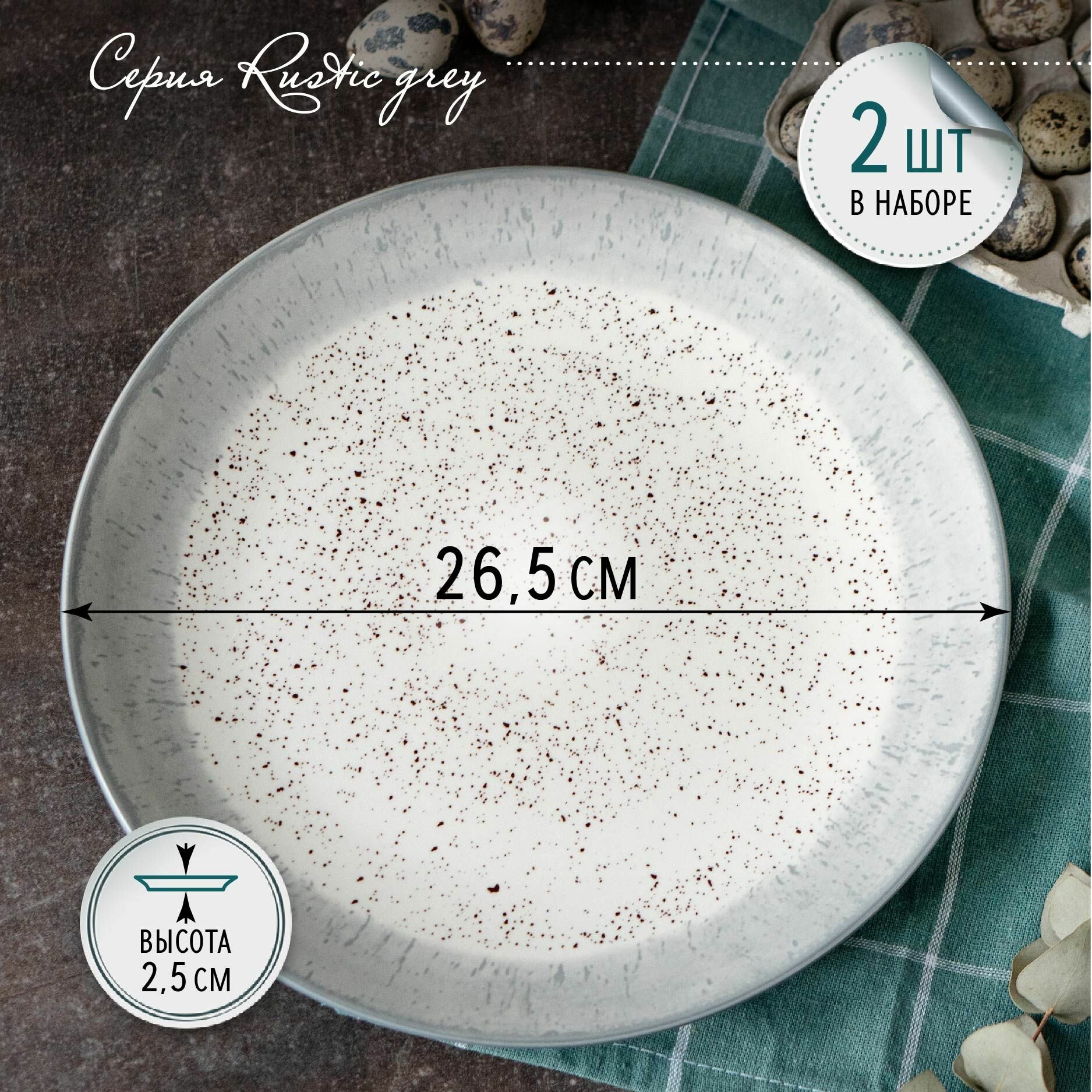 Купить Тарелки набор 2шт 26,5 см "Rustic grey" фарфор, тарелка обеденная для вторых блюд на две персоны