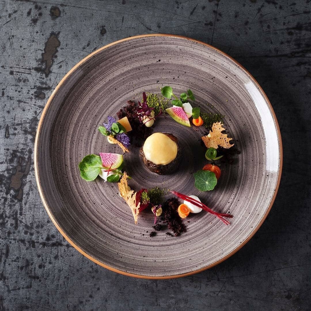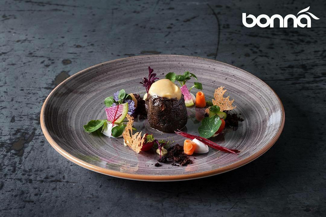 СохранитьТарелка обеденная круглая Bonna "Спейс" 1 шт, 25 см, тем-серая, ударопрочный, профессиональный фарфор. интересное: