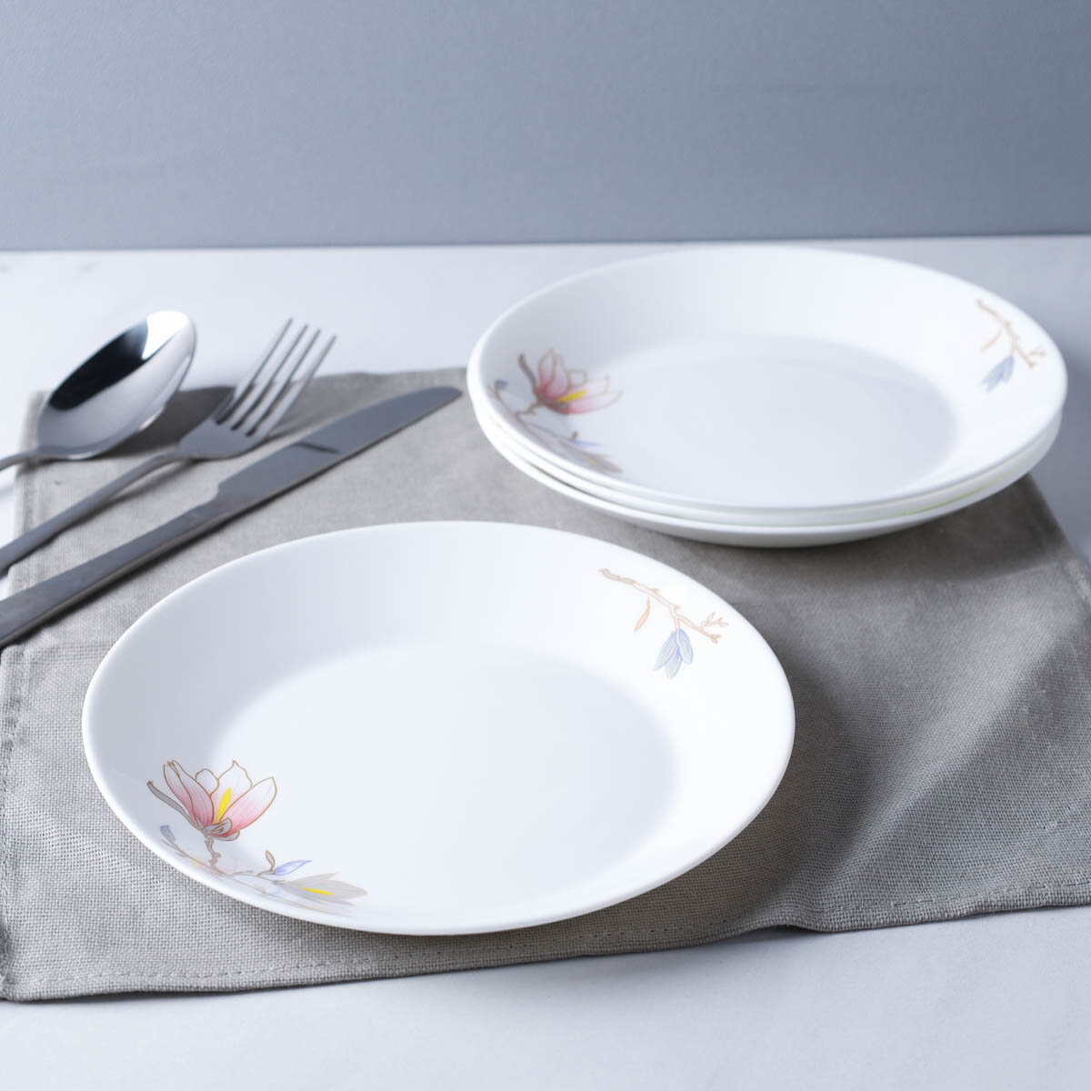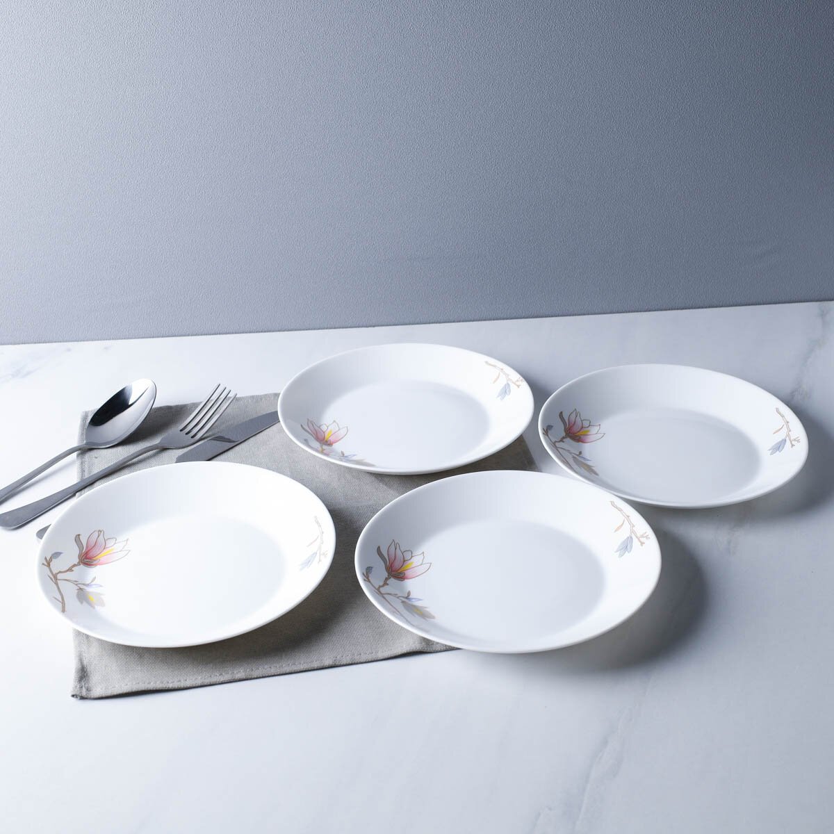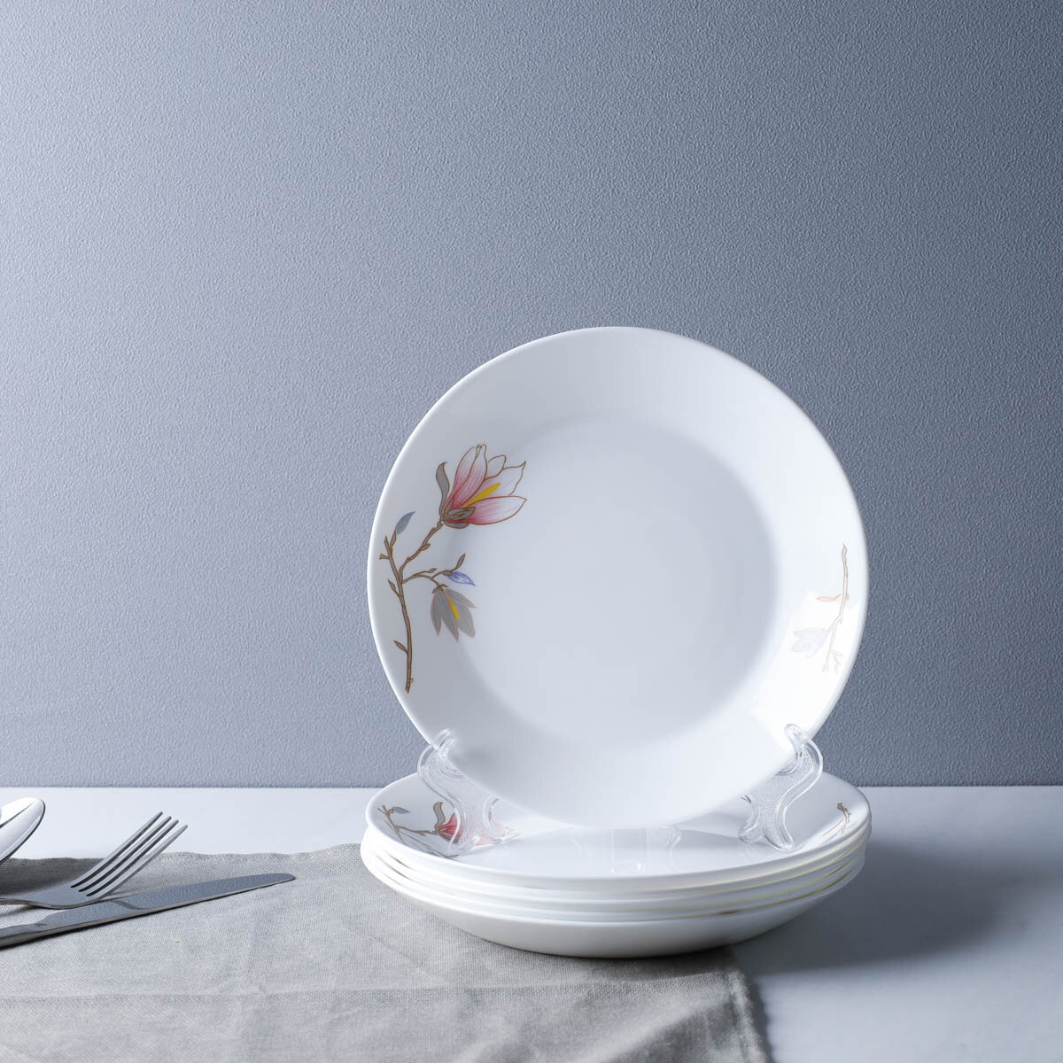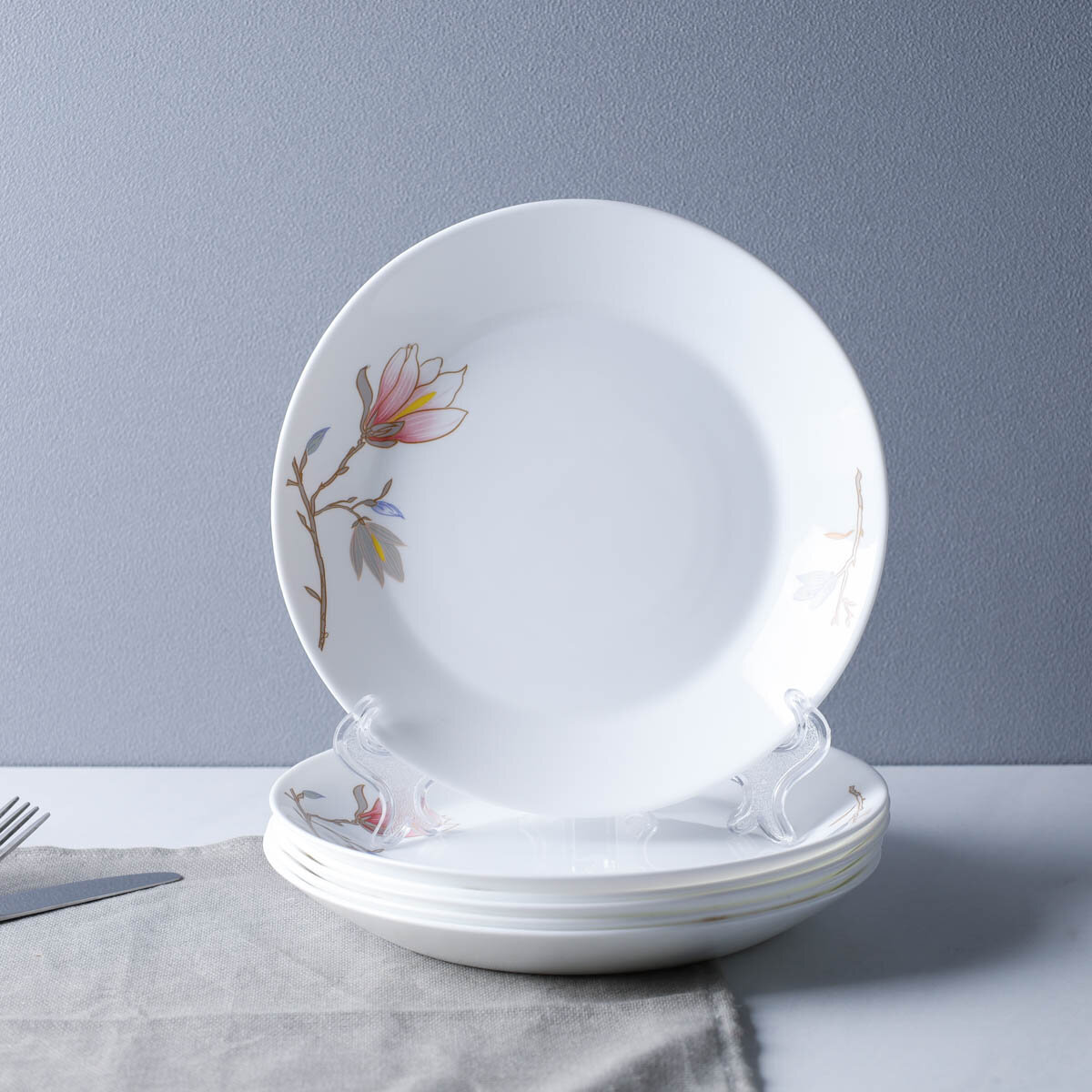 Купить Столовый набор плоских тарелок "Магнолия" 19 см для сервировки стола, керамика - 4 шт