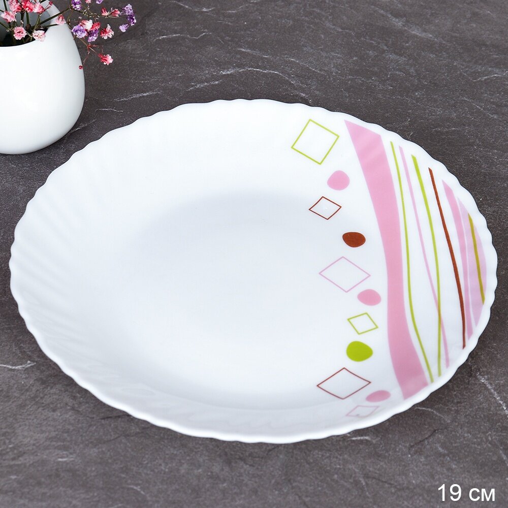 Тарелка плоская десертная 19 см "Абстракция розовая" -4 штуки