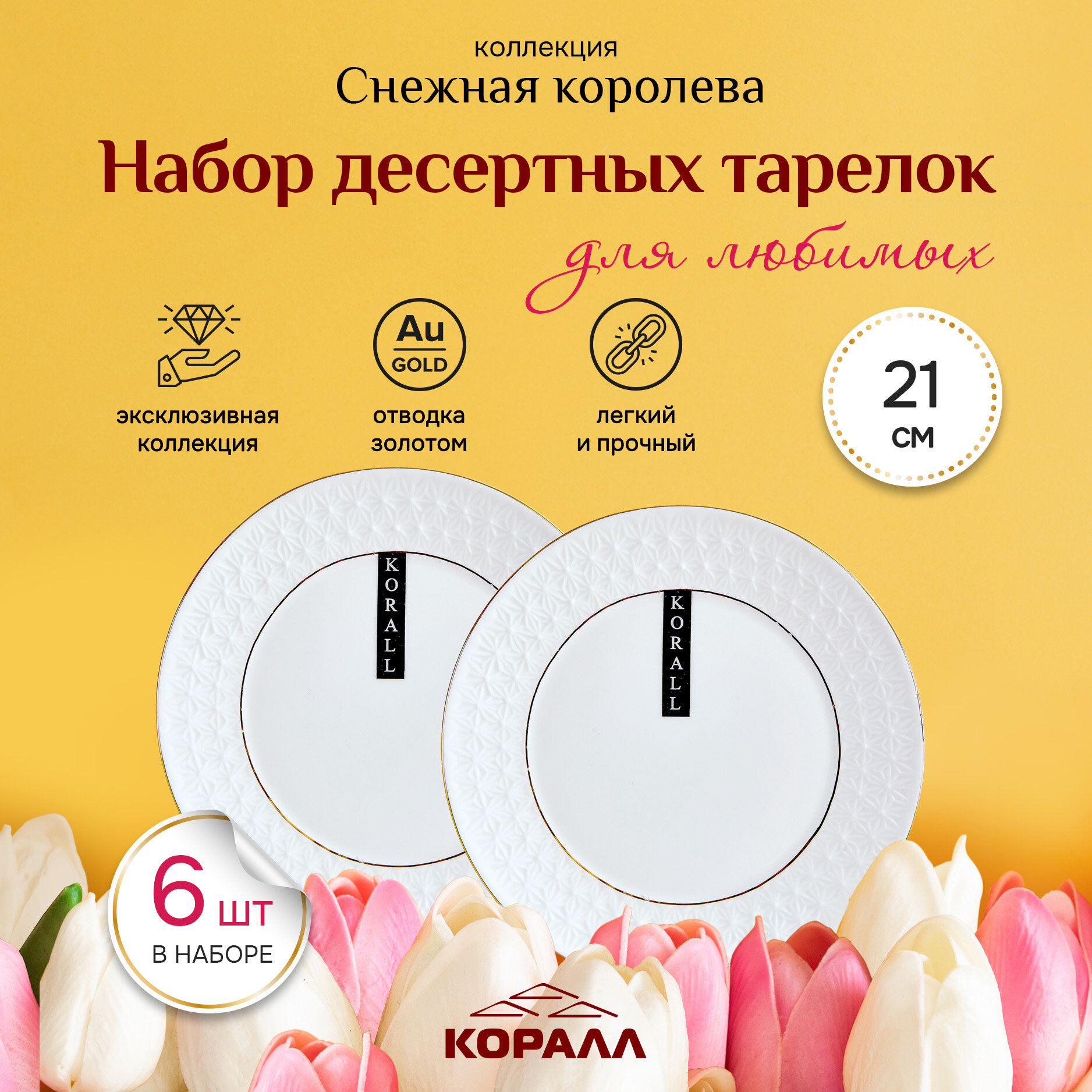 Набор тарелок 6шт 21см (круг) "Снежная королева" керамика, десертные плоские тарелки интересное: