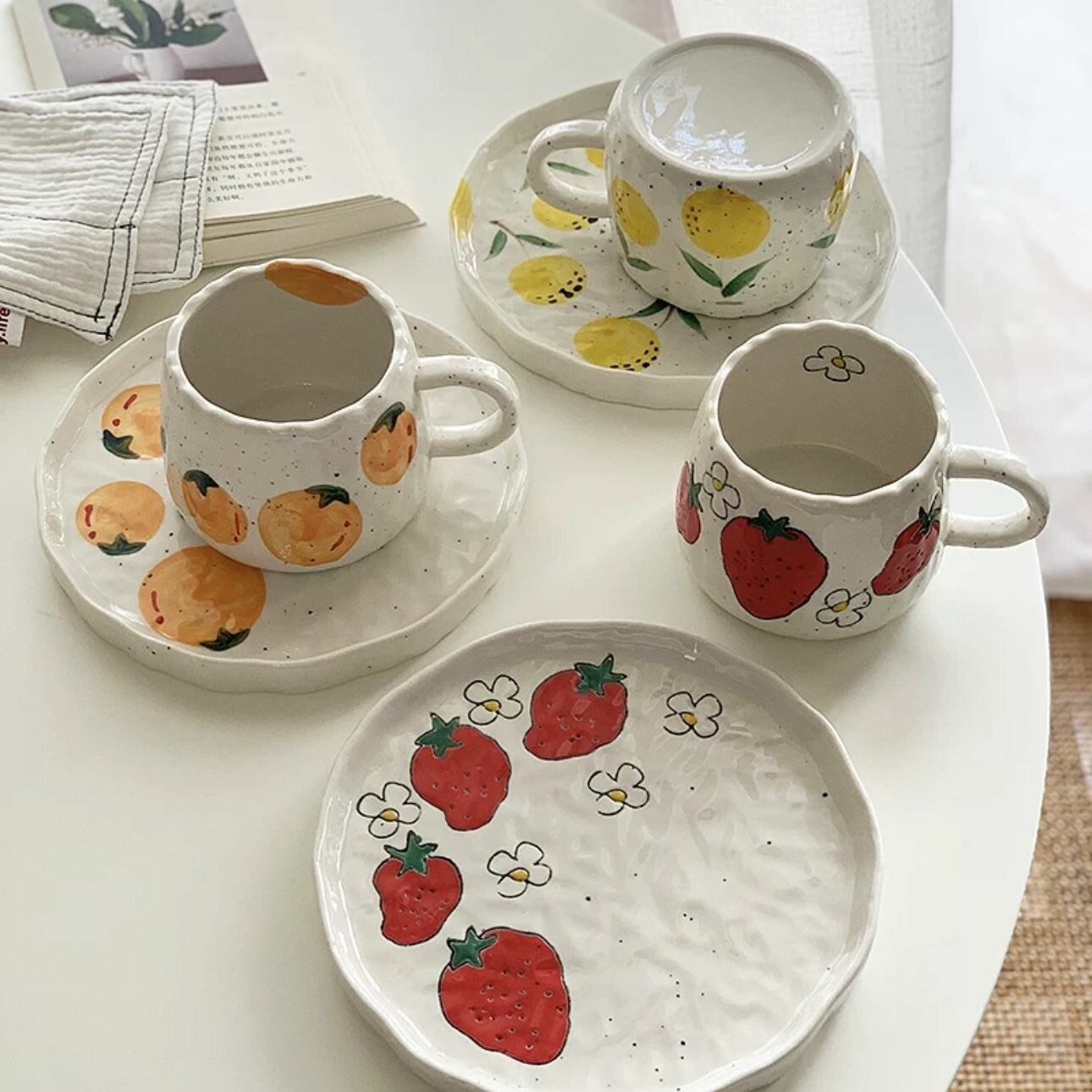 Купить Тарелка с бортом "Персики" из керамики, тарелка с ягодами, Chasha