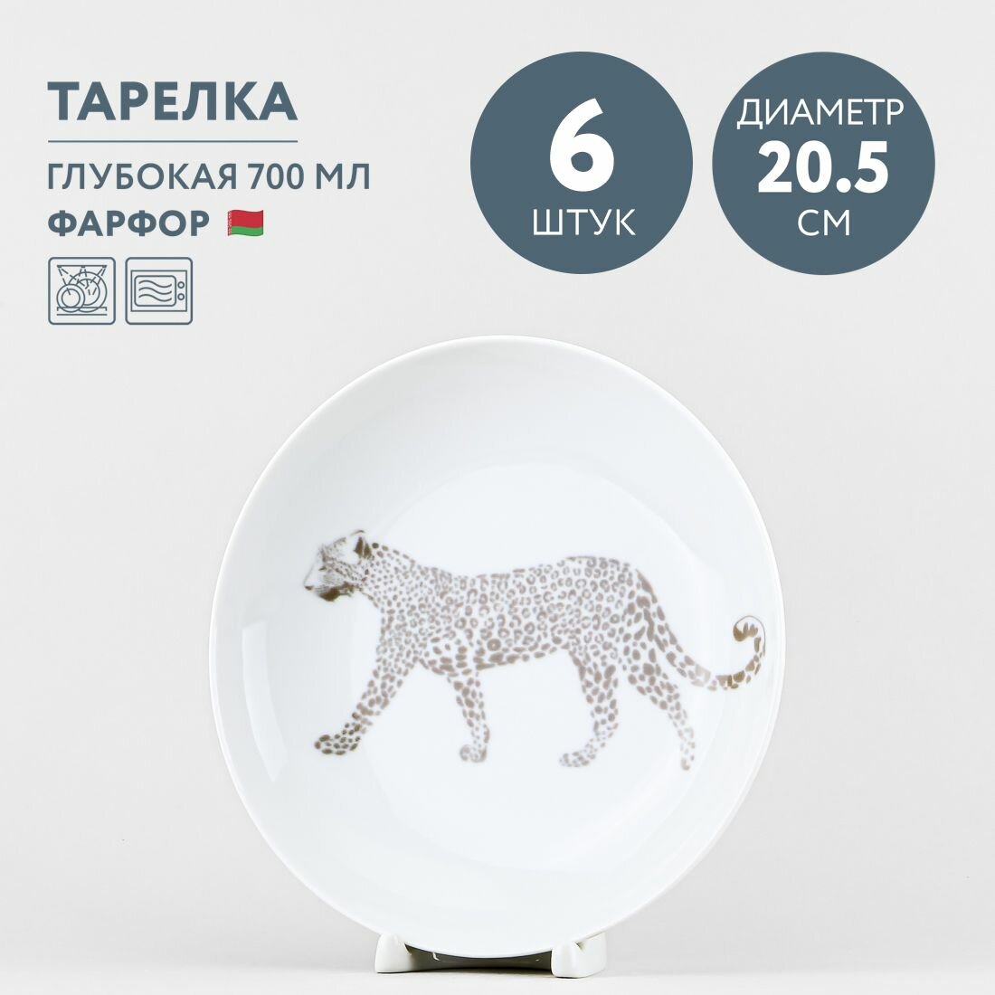 Набор из 6 тарелок суповых 20.5 см Добрушский фарфор Сафари Леопард интересное:
