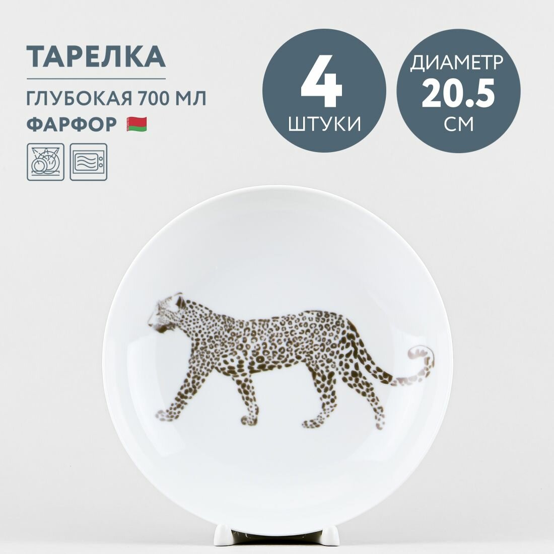 Набор из 4 тарелок суповых 20.5 см Добрушский фарфор Сафари Леопард интересное: