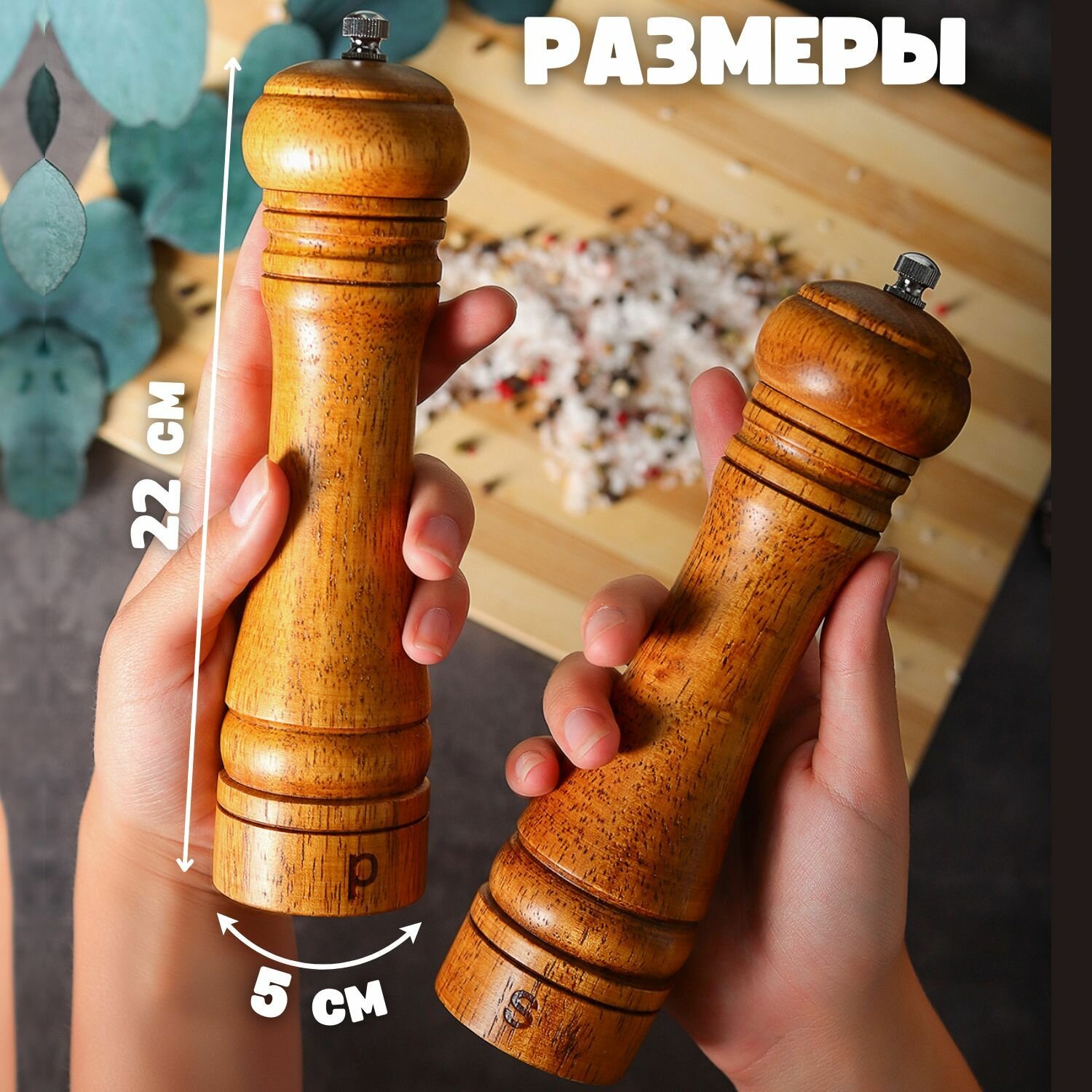 Набор мельниц для специй на подставке с керамическими жерновами