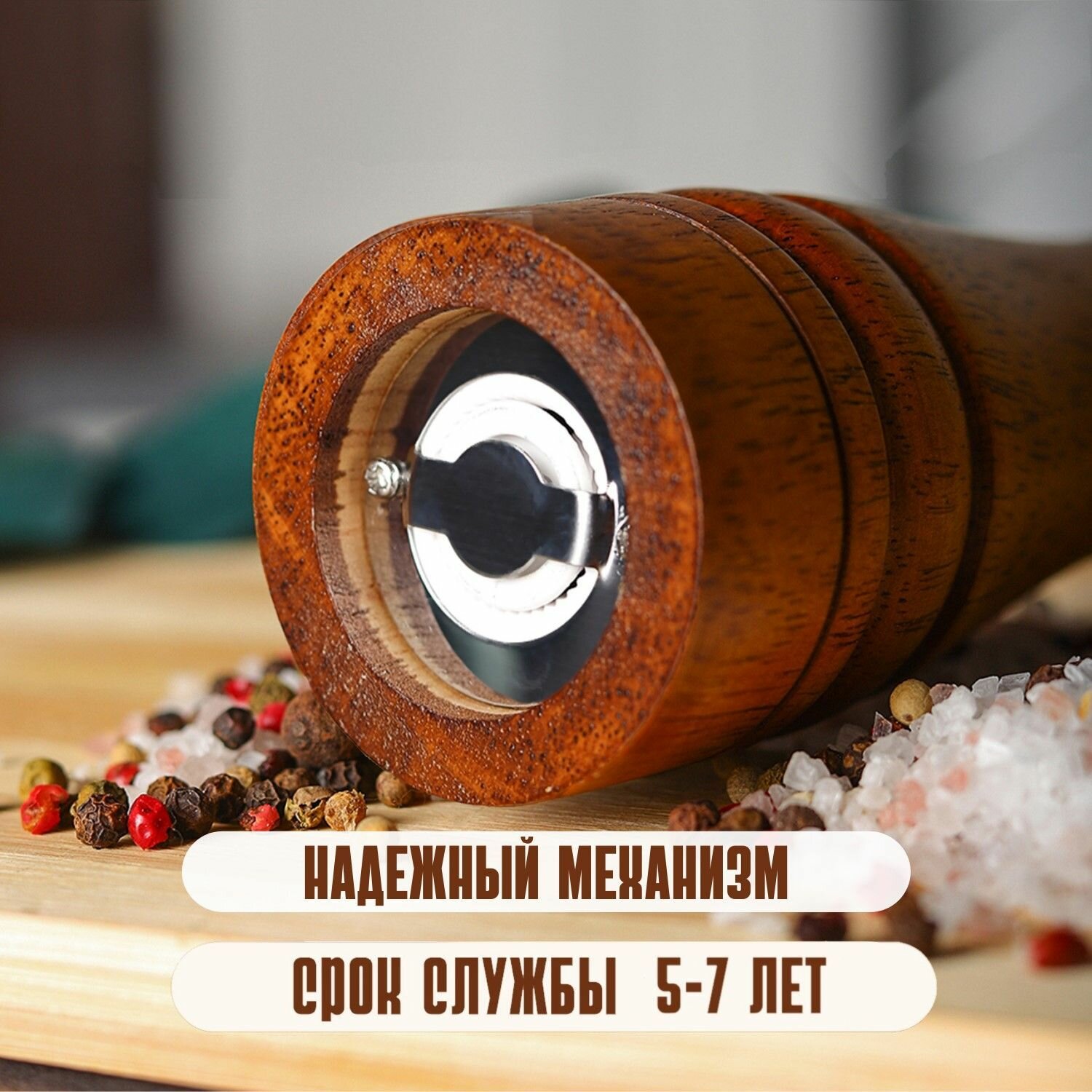 Мельница для перца деревянная ручная с металлическими жерновами
