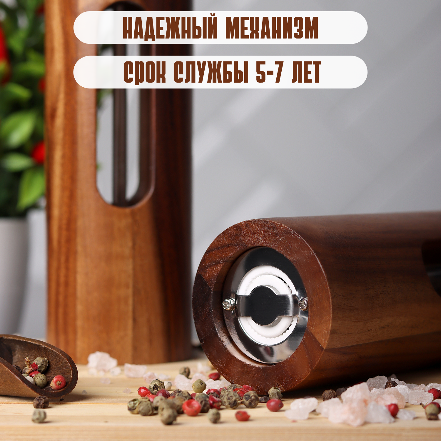 Мельница для перца деревянная ручная с металлическими жерновами