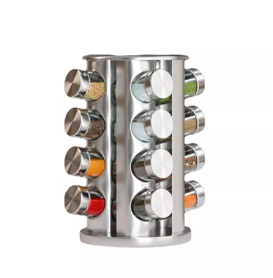 Набор баночек для специй, банки для хранения приправ на вращающейся подставке, 20 шт, серебряный